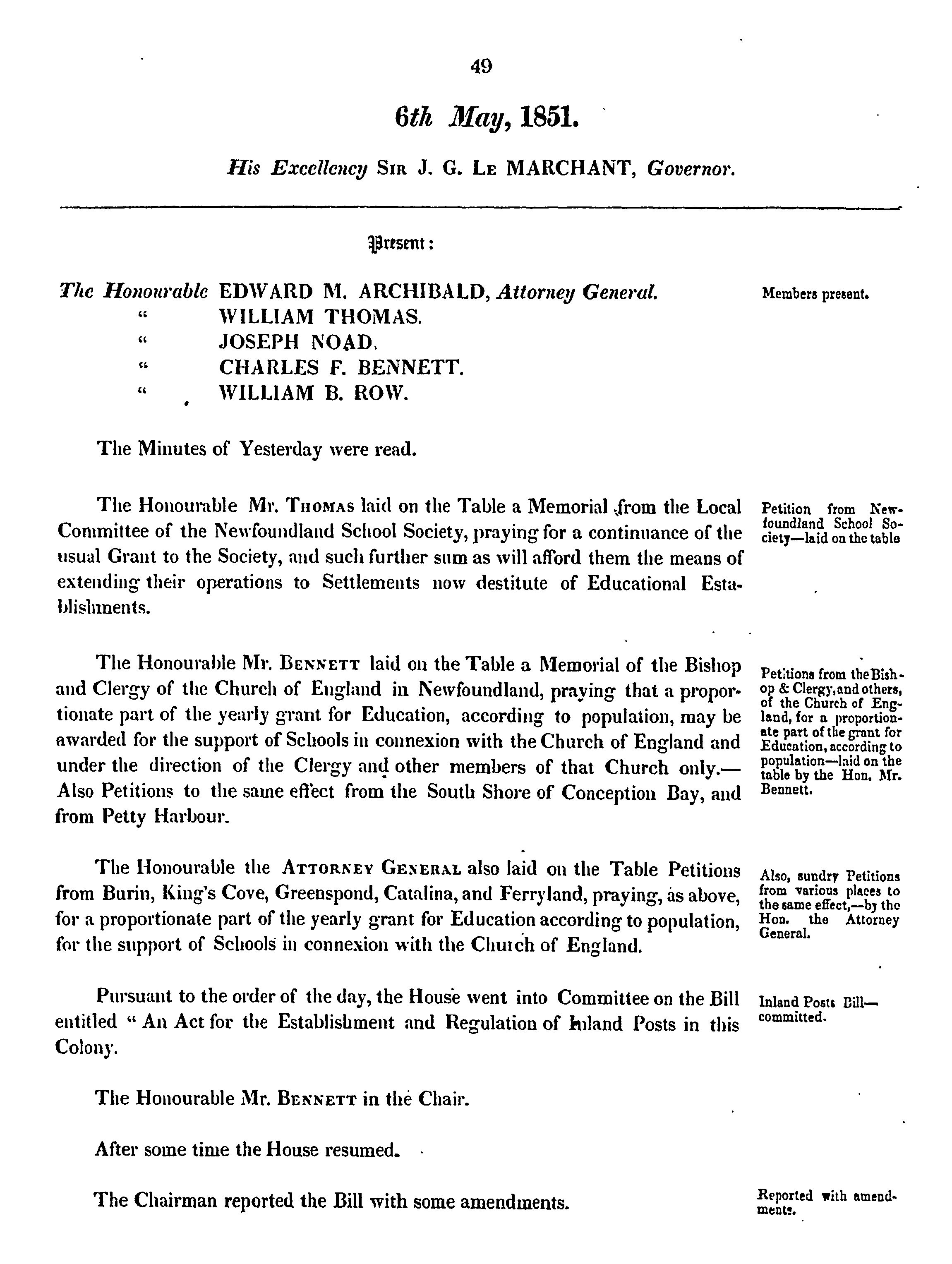 Journals of the Legislative Council of the Island of Newfoundland : Journals of the Legislative Council of the Island of Newfoundland : being the third session of the fourth General Assembly, 1851 : 1851