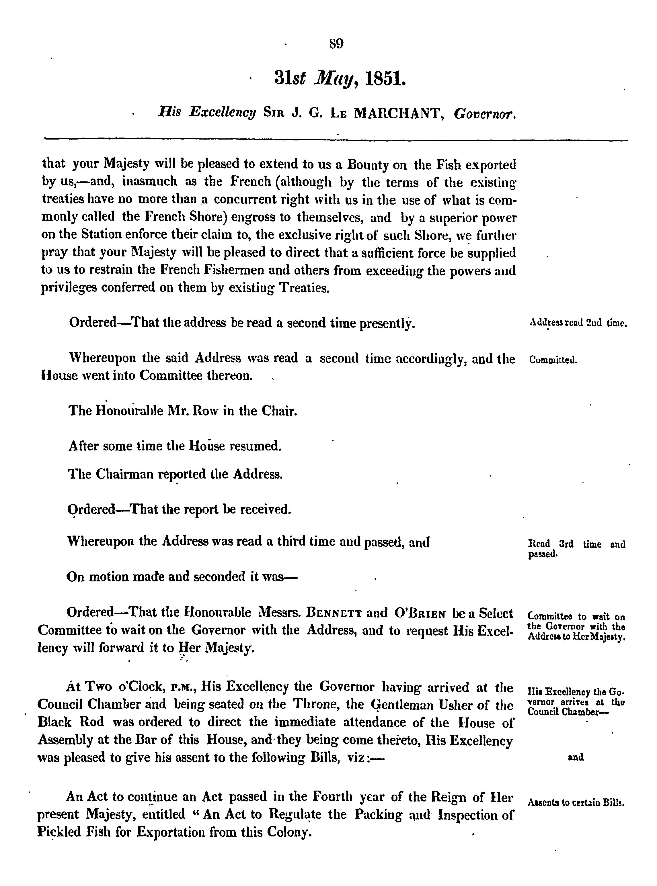 Journals of the Legislative Council of the Island of Newfoundland : Journals of the Legislative Council of the Island of Newfoundland : being the third session of the fourth General Assembly, 1851 : 1851