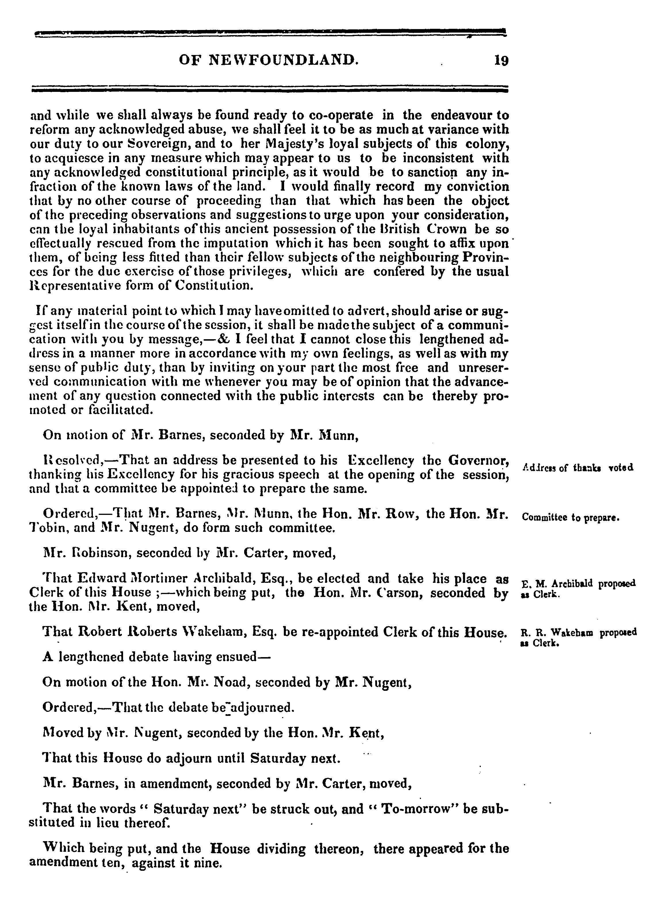 Journal of the General Assembly of Newfoundland : anno sexto Victoriæ ... 1st session of the third General Assembly : 1843