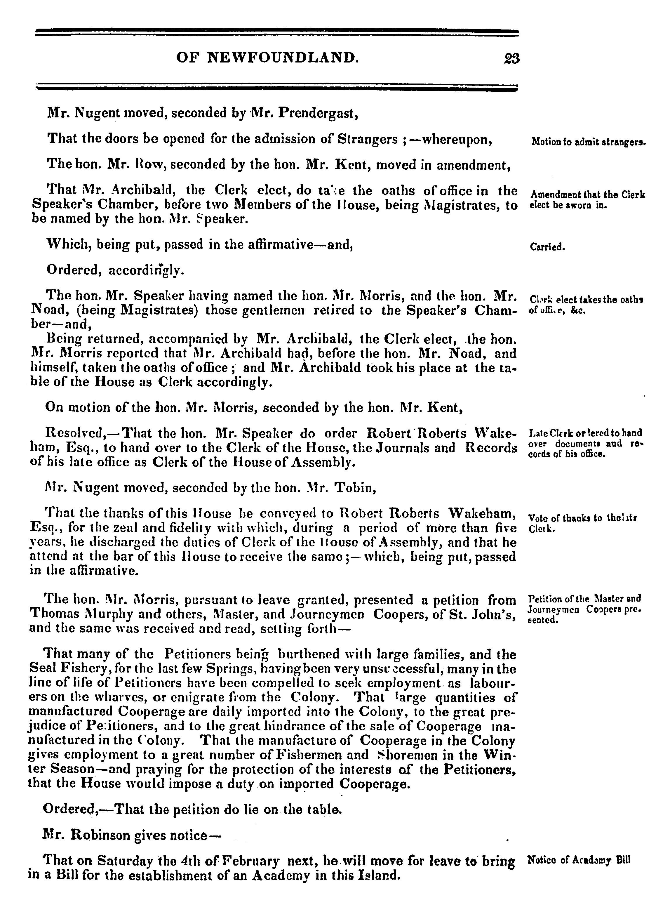 Journal of the General Assembly of Newfoundland : anno sexto Victoriæ ... 1st session of the third General Assembly : 1843