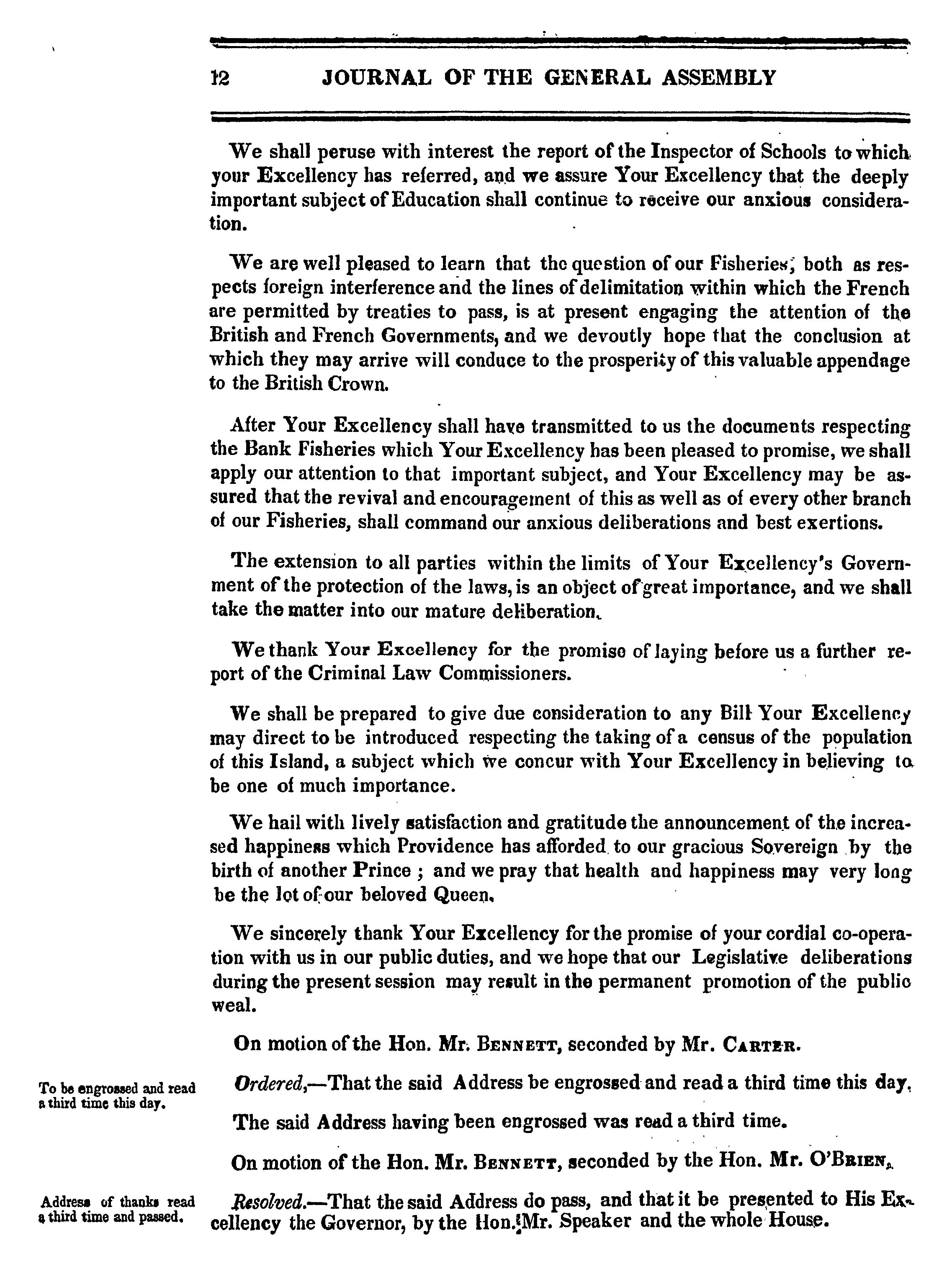 Journal of the General Assembly of Newfoundland : anno octavo Victoriæ Reginæ ... third session of the third General Assembly : 1845