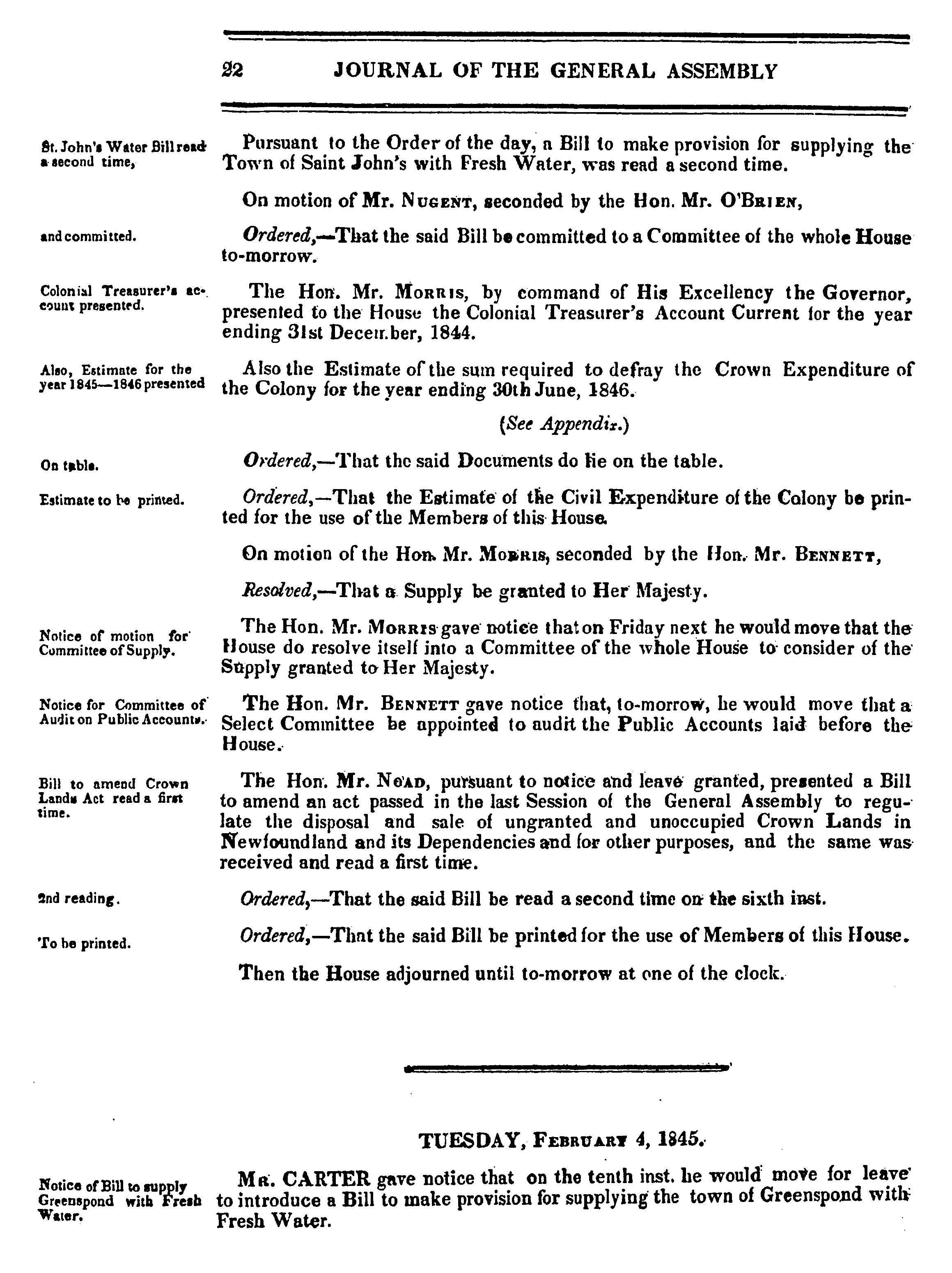 Journal of the General Assembly of Newfoundland ... : Journal of the General Assembly of Newfoundland : anno octavo Victoriæ Reginæ ... third session of the third General Assembly : 1845