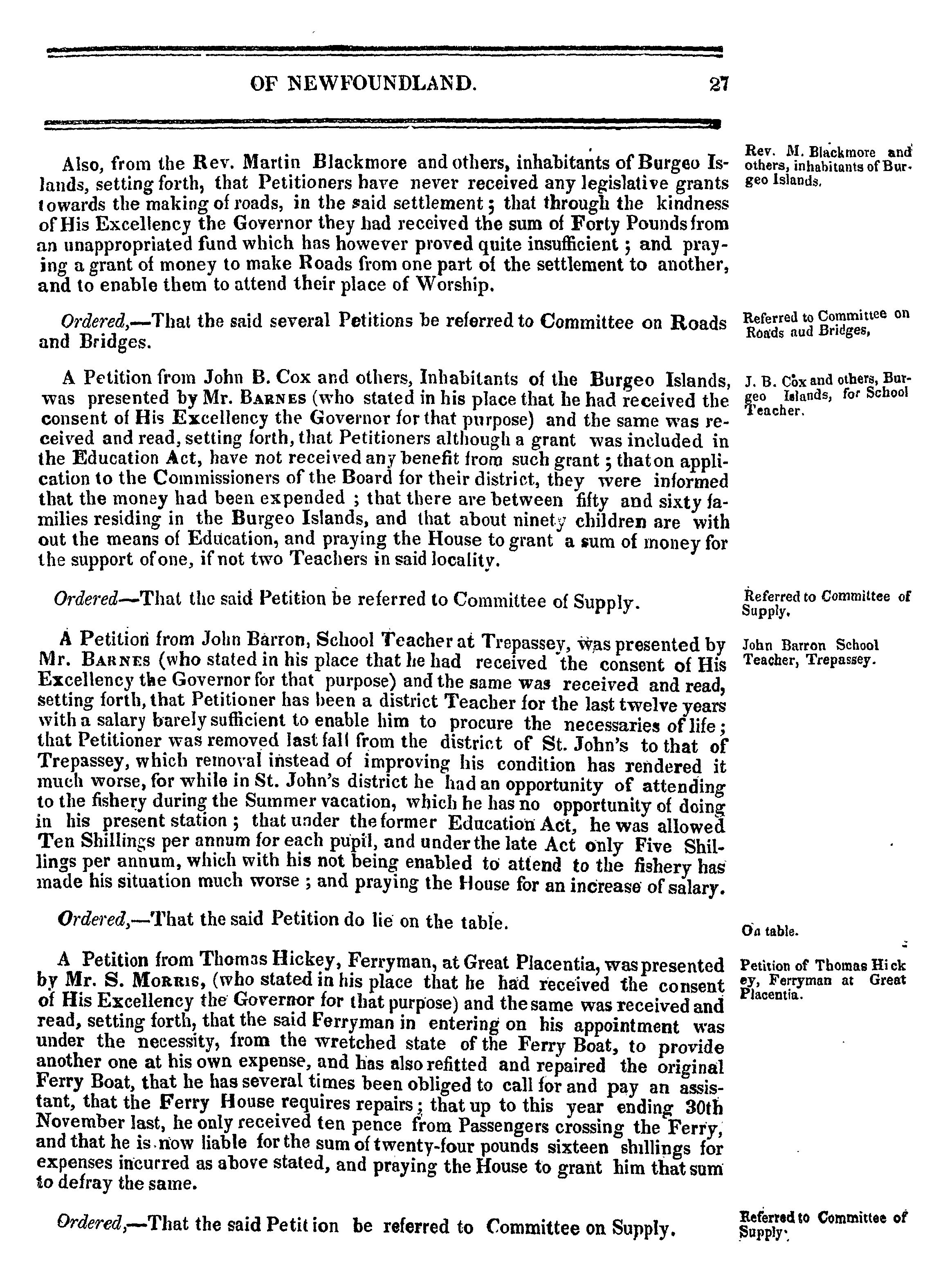 Journal of the General Assembly of Newfoundland : anno octavo Victoriæ Reginæ ... third session of the third General Assembly : 1845