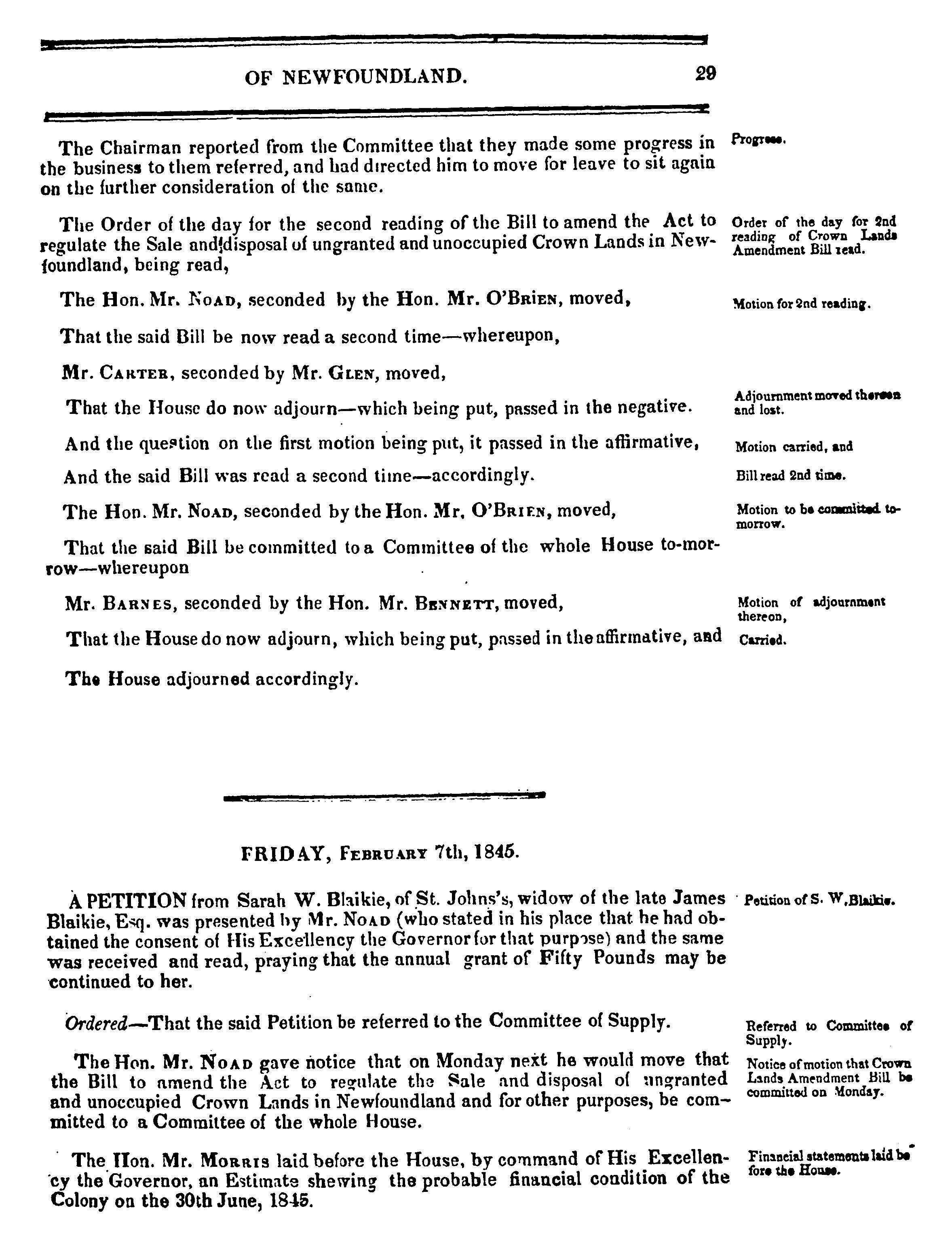 Journal of the General Assembly of Newfoundland : anno octavo Victoriæ Reginæ ... third session of the third General Assembly : 1845