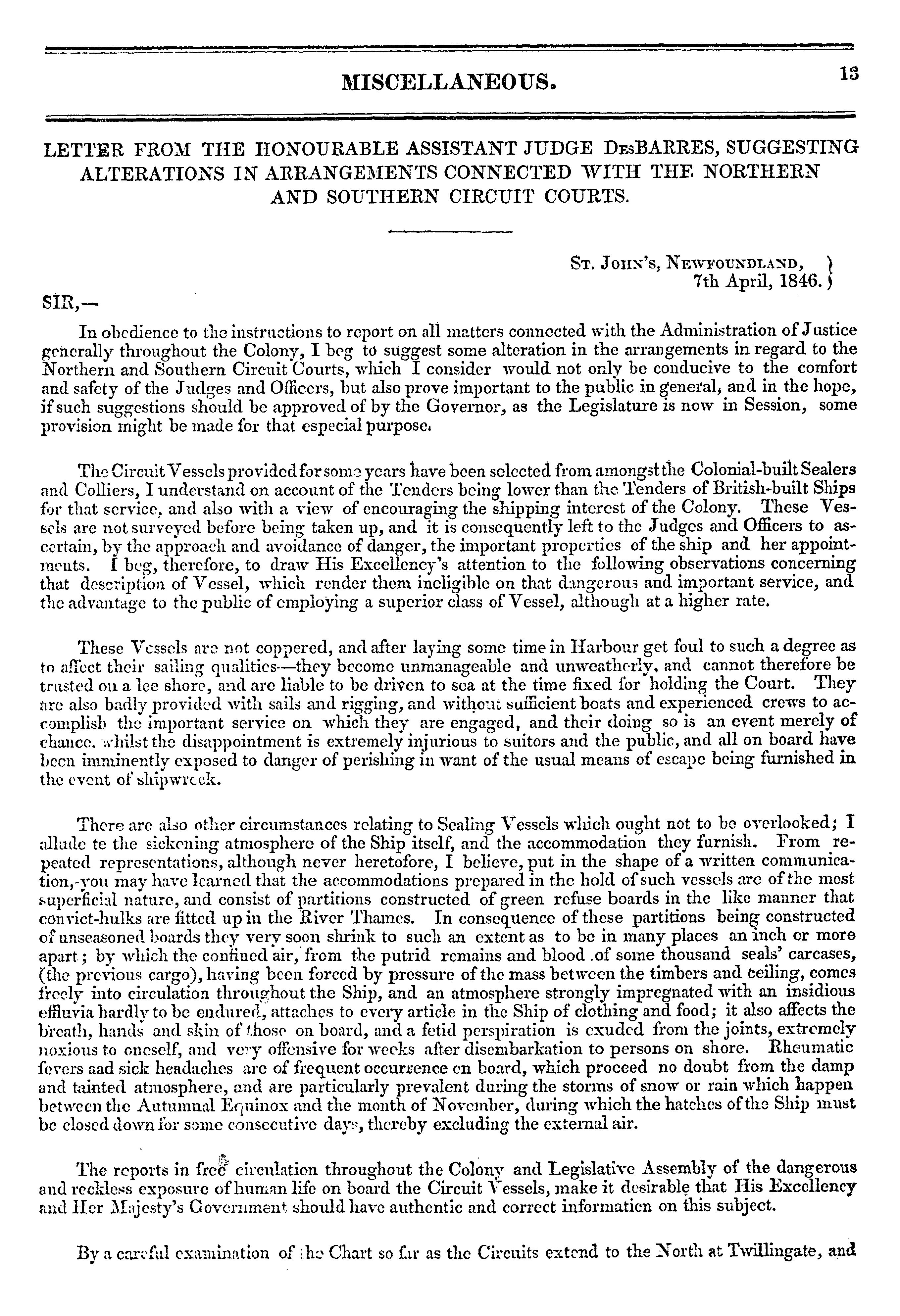 Journal of the General Assembly of Newfoundland : anno nono Victoriæ reginæ ... fourth session of the third General Assembly : 1846