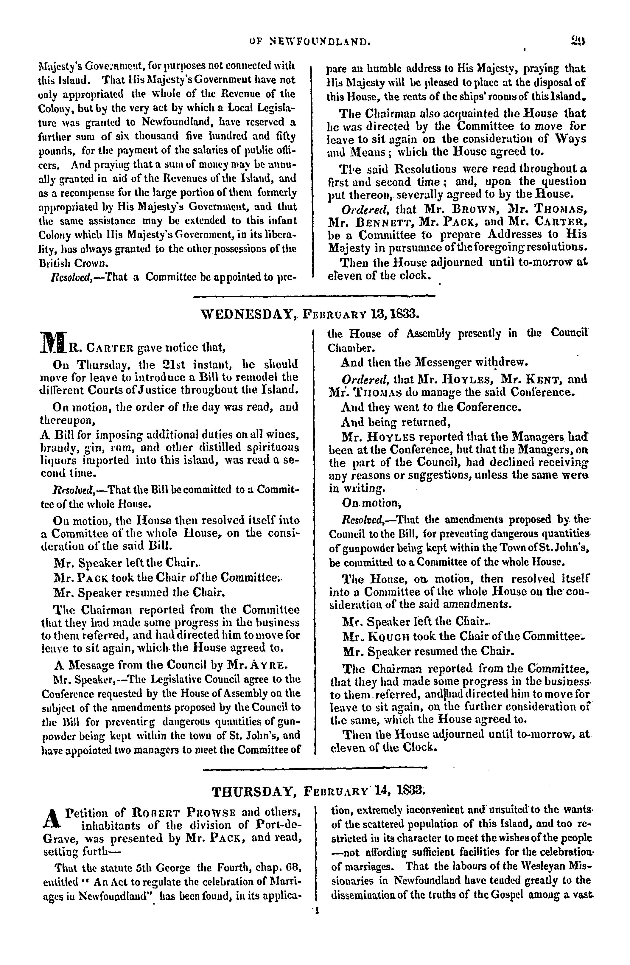 Journal of the House of Assembly of Newfoundland ... : Journal of the House of Assembly of Newfoundland : anno tertio regis Gulielmi IV : first session of the first General Assembly : 1833
