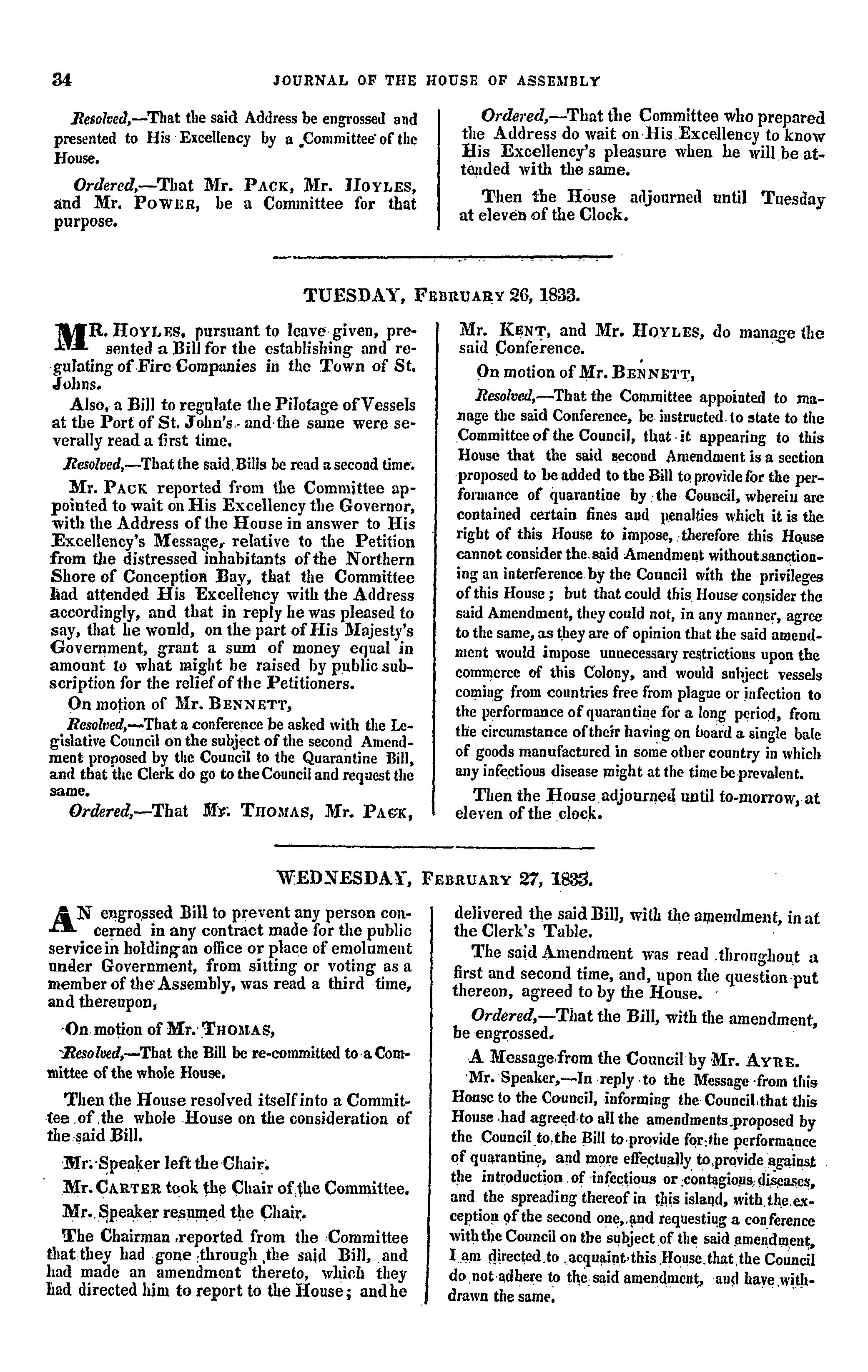 Journal of the House of Assembly of Newfoundland ... : Journal of the House of Assembly of Newfoundland : anno tertio regis Gulielmi IV : first session of the first General Assembly : 1833