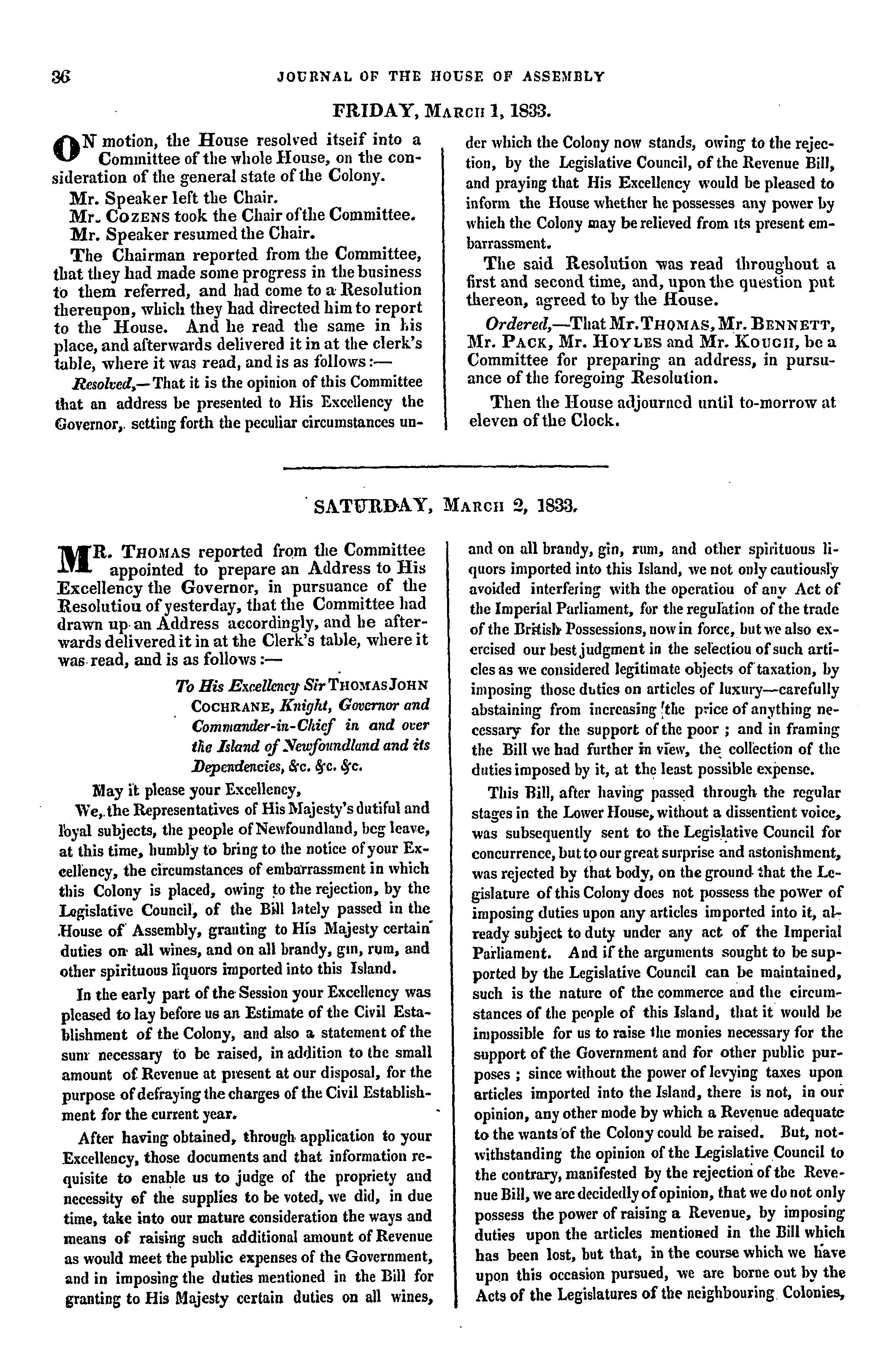 Journal of the House of Assembly of Newfoundland ... : Journal of the House of Assembly of Newfoundland : anno tertio regis Gulielmi IV : first session of the first General Assembly : 1833