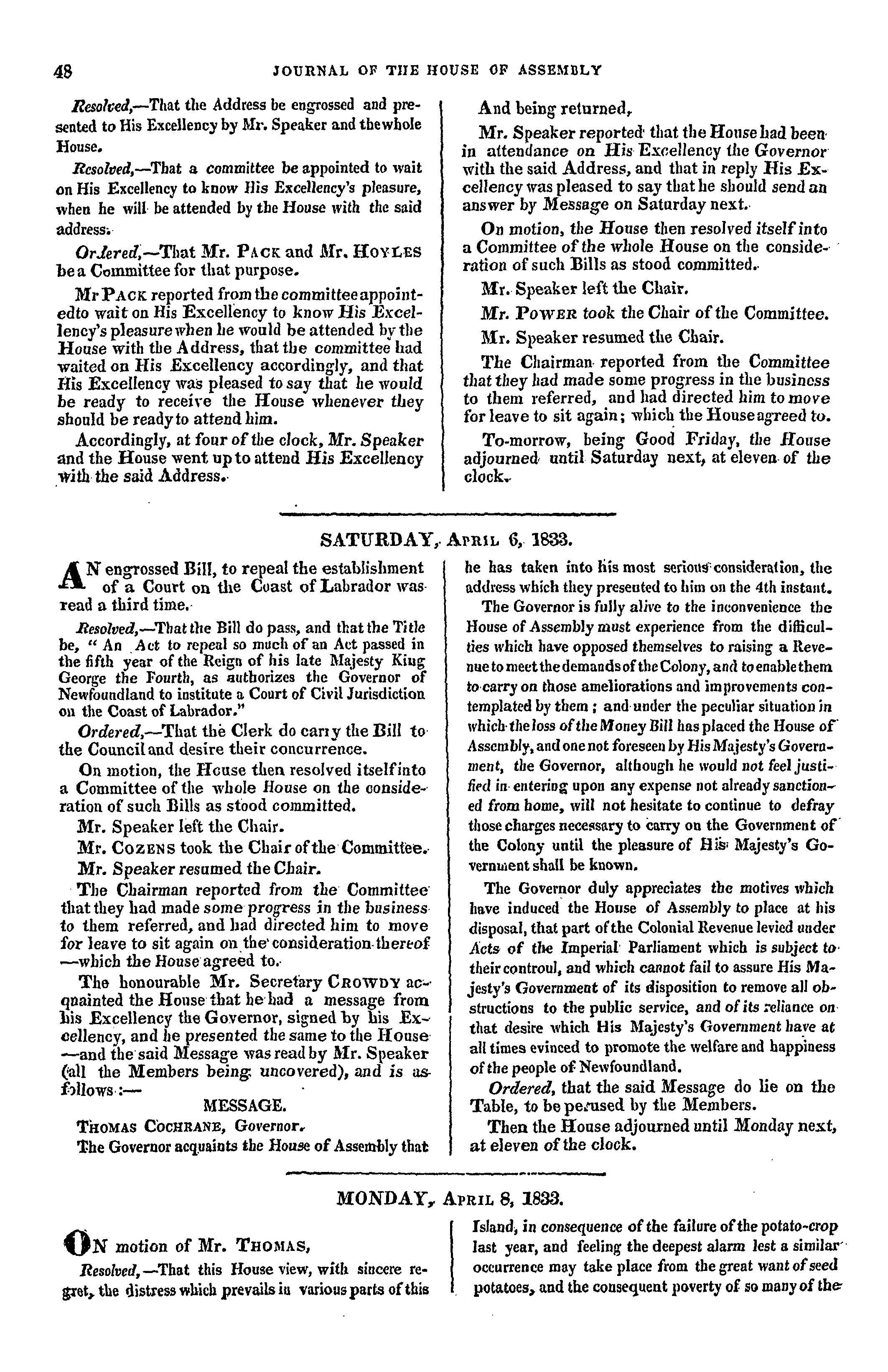 Journal of the House of Assembly of Newfoundland ... : Journal of the House of Assembly of Newfoundland : anno tertio regis Gulielmi IV : first session of the first General Assembly : 1833