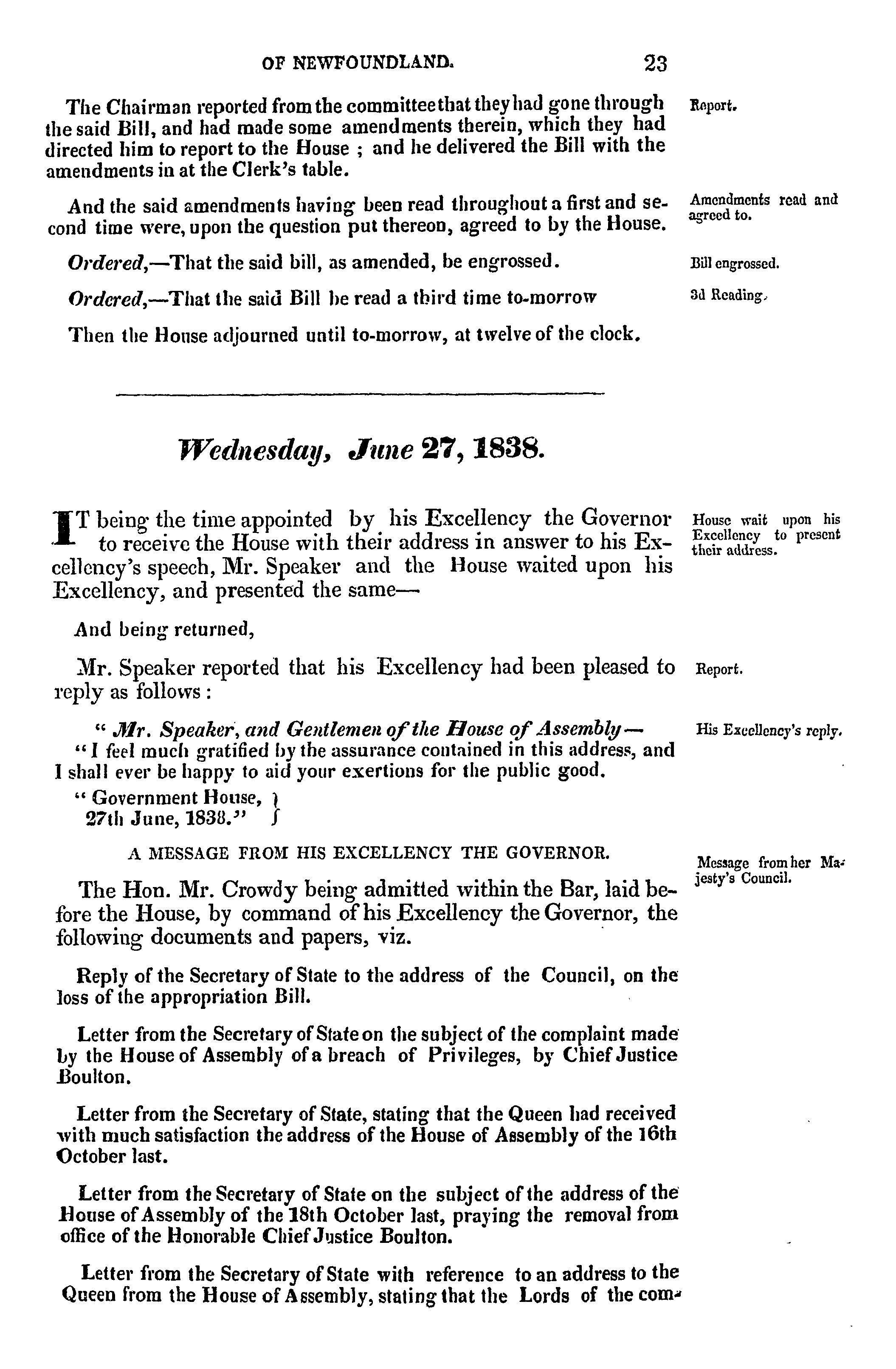 - Journal of the House of Assembly of Newfoundland : anno secundo regina Alexandrina Victoria I, second session of the second General Assembly : 1838