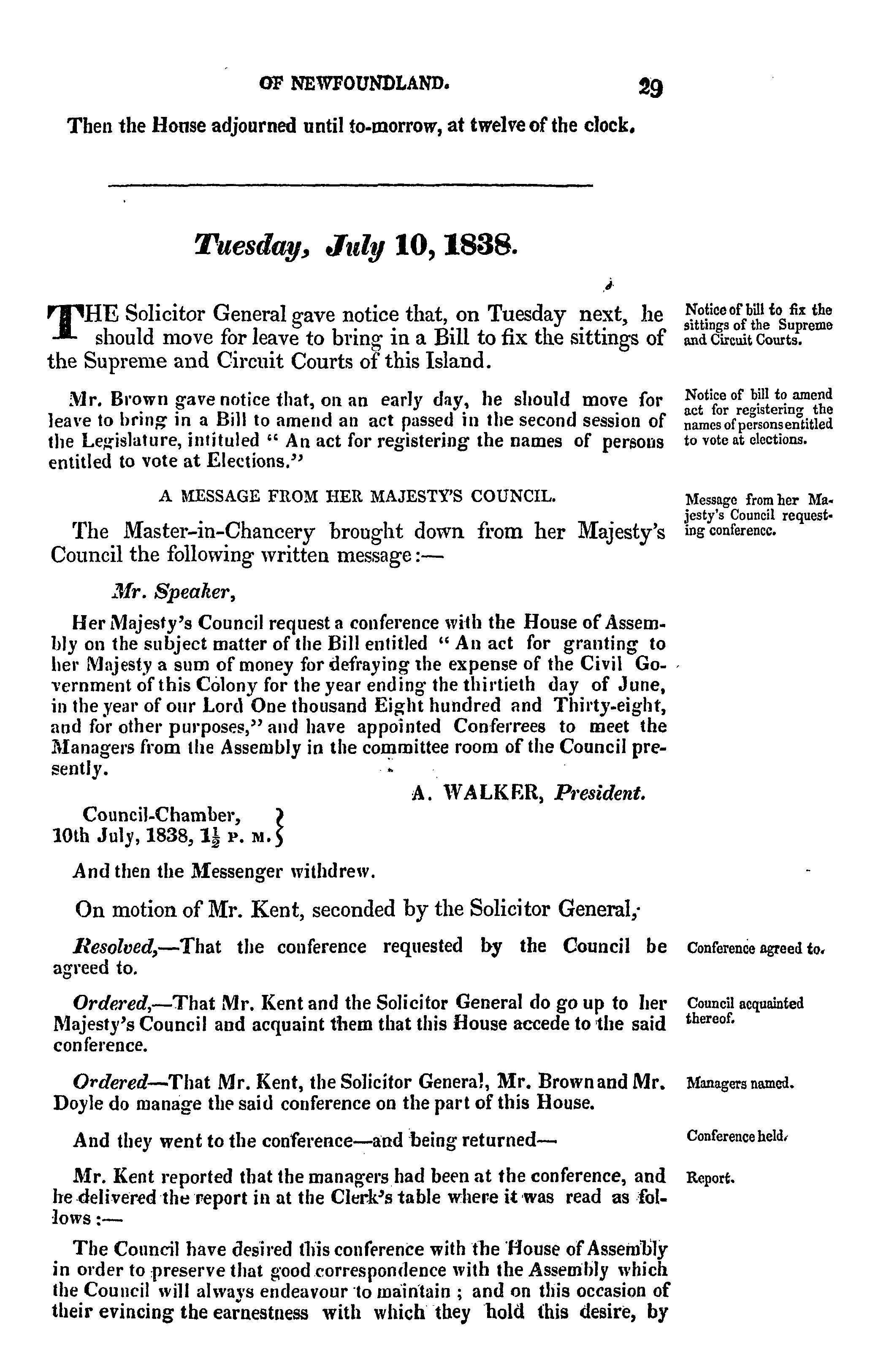 - Journal of the House of Assembly of Newfoundland : anno secundo regina Alexandrina Victoria I, second session of the second General Assembly : 1838