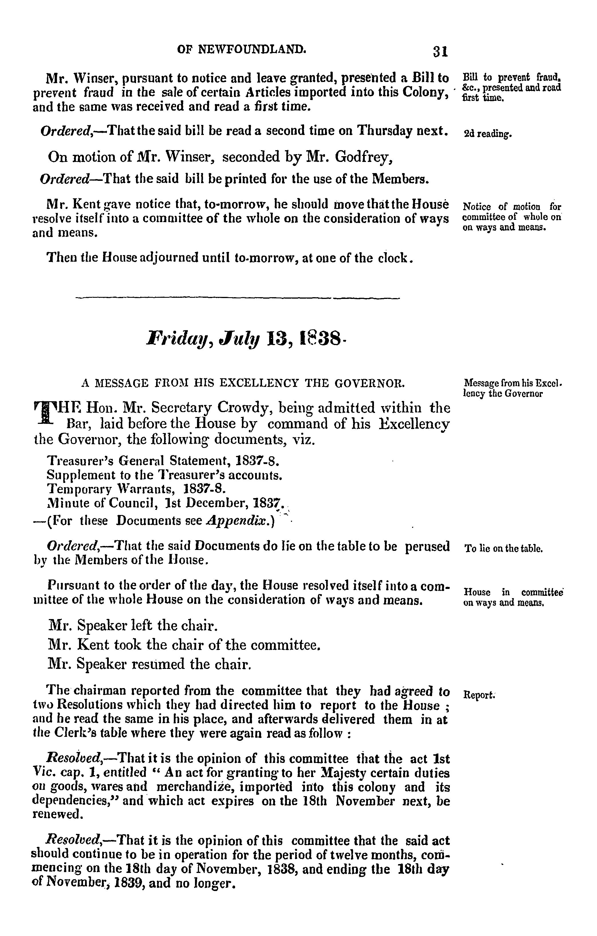 - Journal of the House of Assembly of Newfoundland : anno secundo regina Alexandrina Victoria I, second session of the second General Assembly : 1838