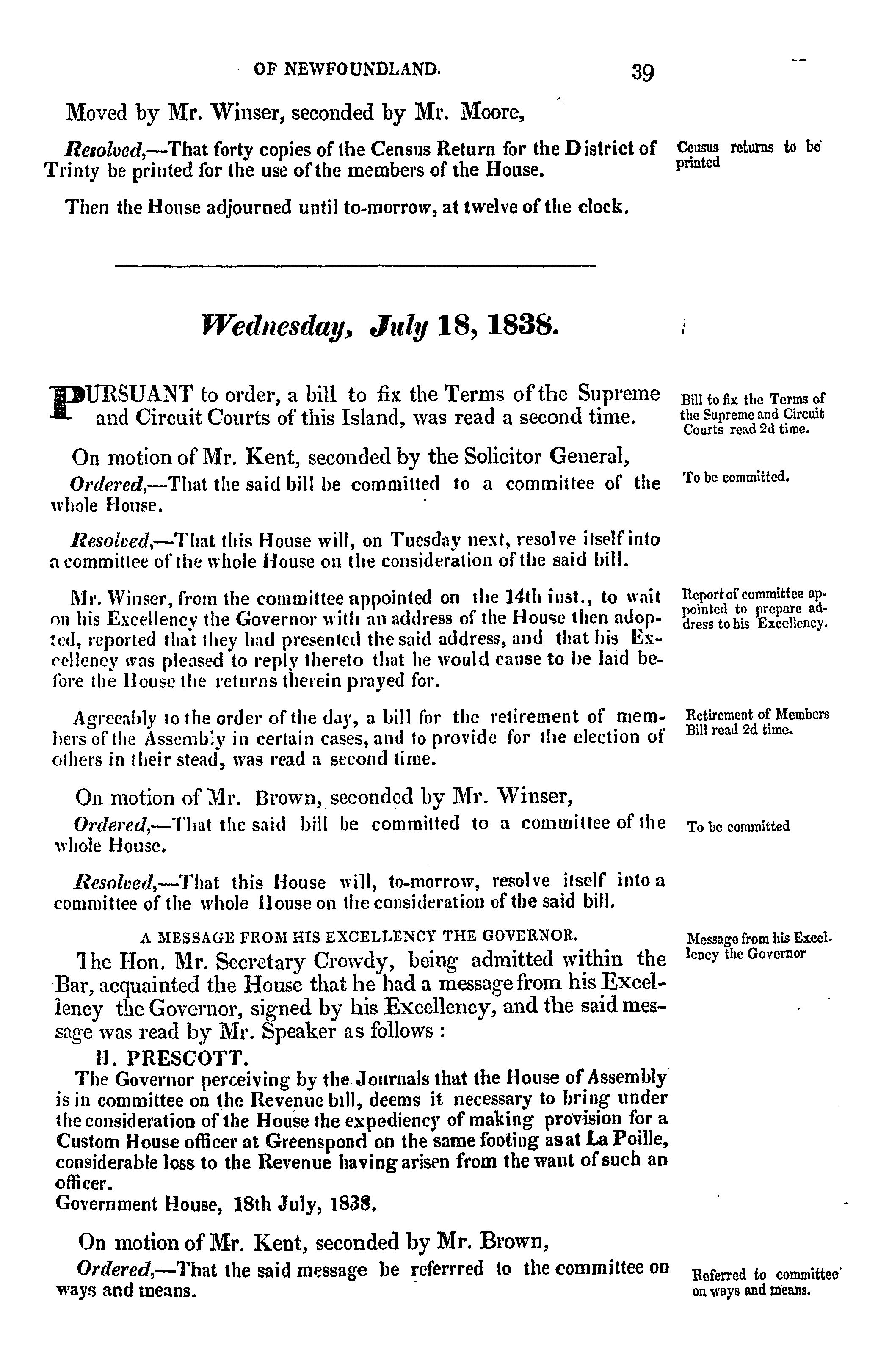 - Journal of the House of Assembly of Newfoundland : anno secundo regina Alexandrina Victoria I, second session of the second General Assembly : 1838