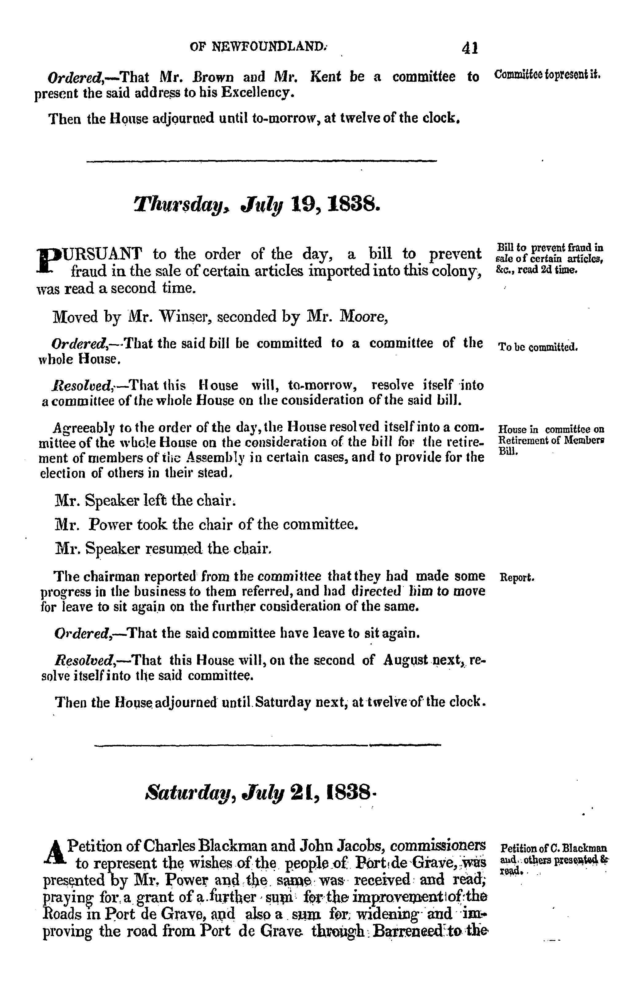 - Journal of the House of Assembly of Newfoundland : anno secundo regina Alexandrina Victoria I, second session of the second General Assembly : 1838
