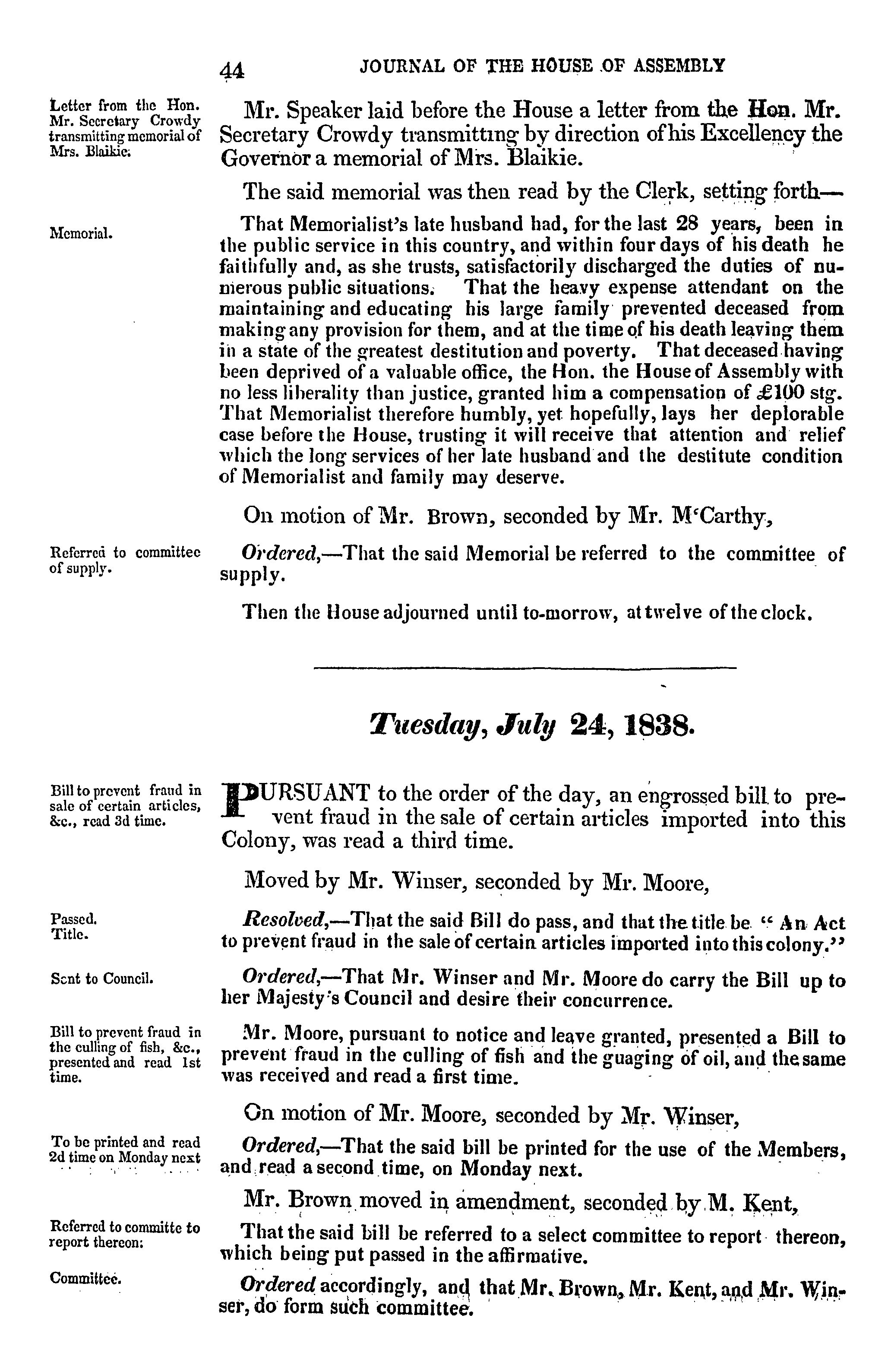 - Journal of the House of Assembly of Newfoundland : anno secundo regina Alexandrina Victoria I, second session of the second General Assembly : 1838