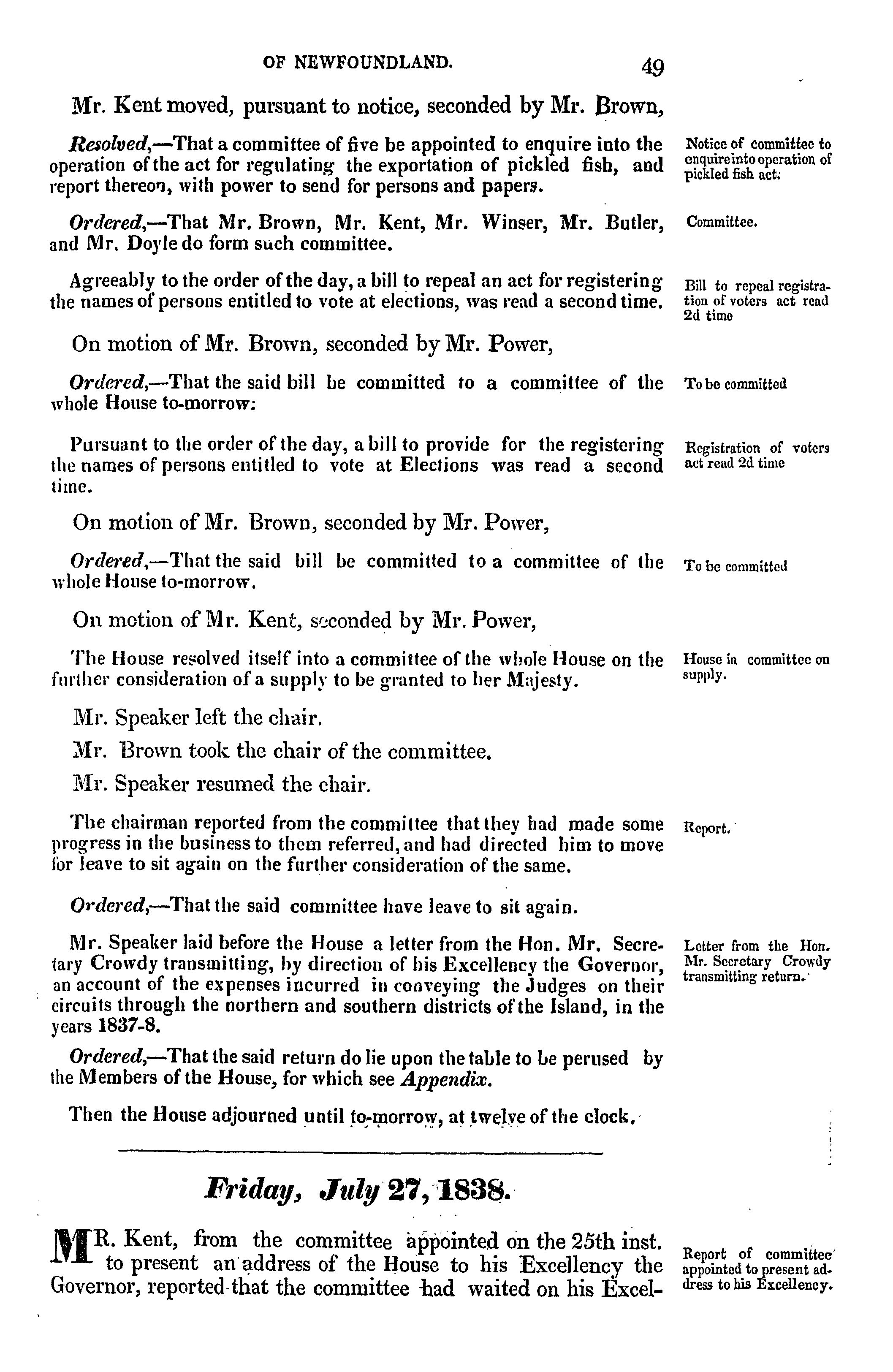 - Journal of the House of Assembly of Newfoundland : anno secundo regina Alexandrina Victoria I, second session of the second General Assembly : 1838