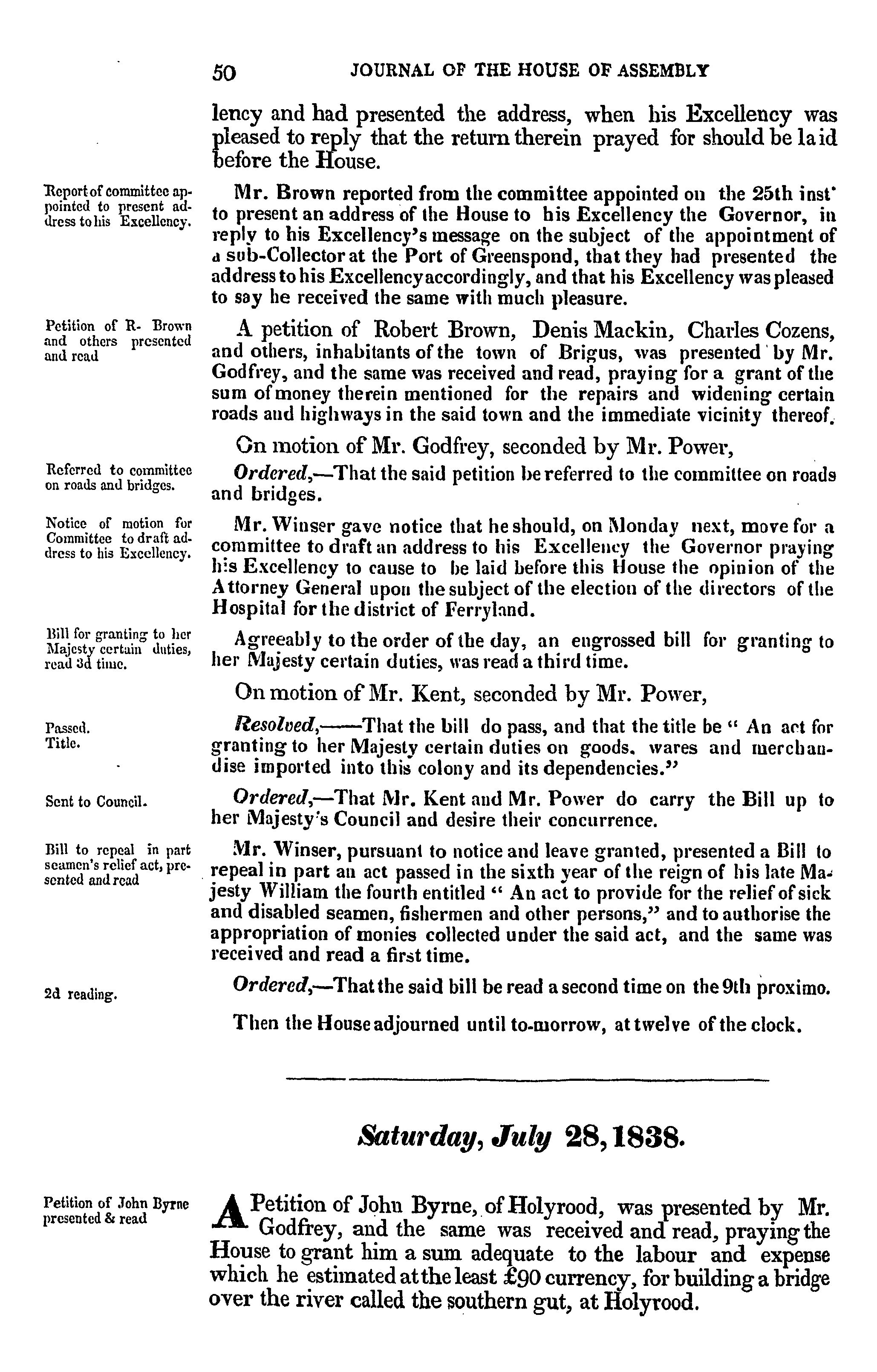 - Journal of the House of Assembly of Newfoundland : anno secundo regina Alexandrina Victoria I, second session of the second General Assembly : 1838