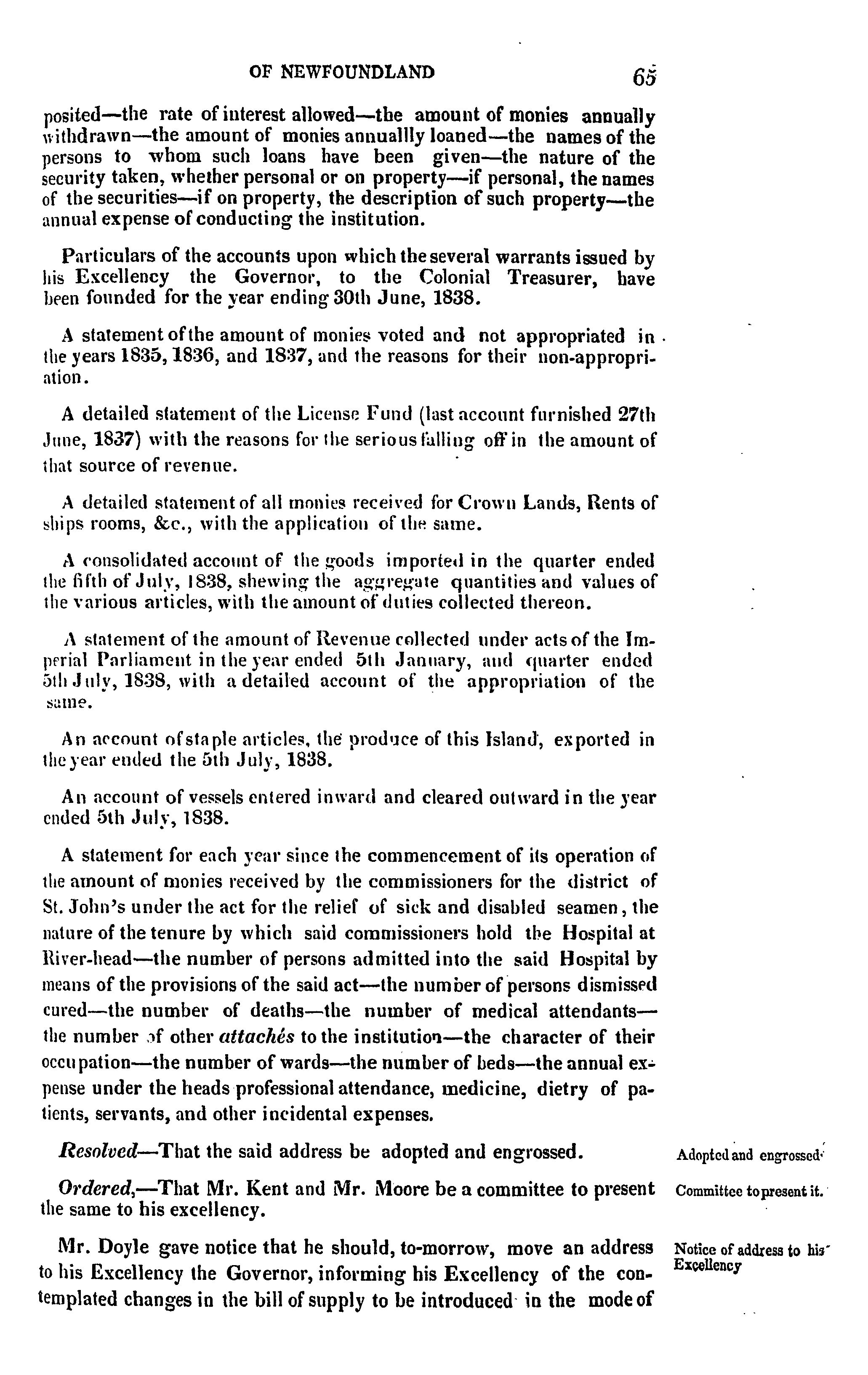 - Journal of the House of Assembly of Newfoundland : anno secundo regina Alexandrina Victoria I, second session of the second General Assembly : 1838