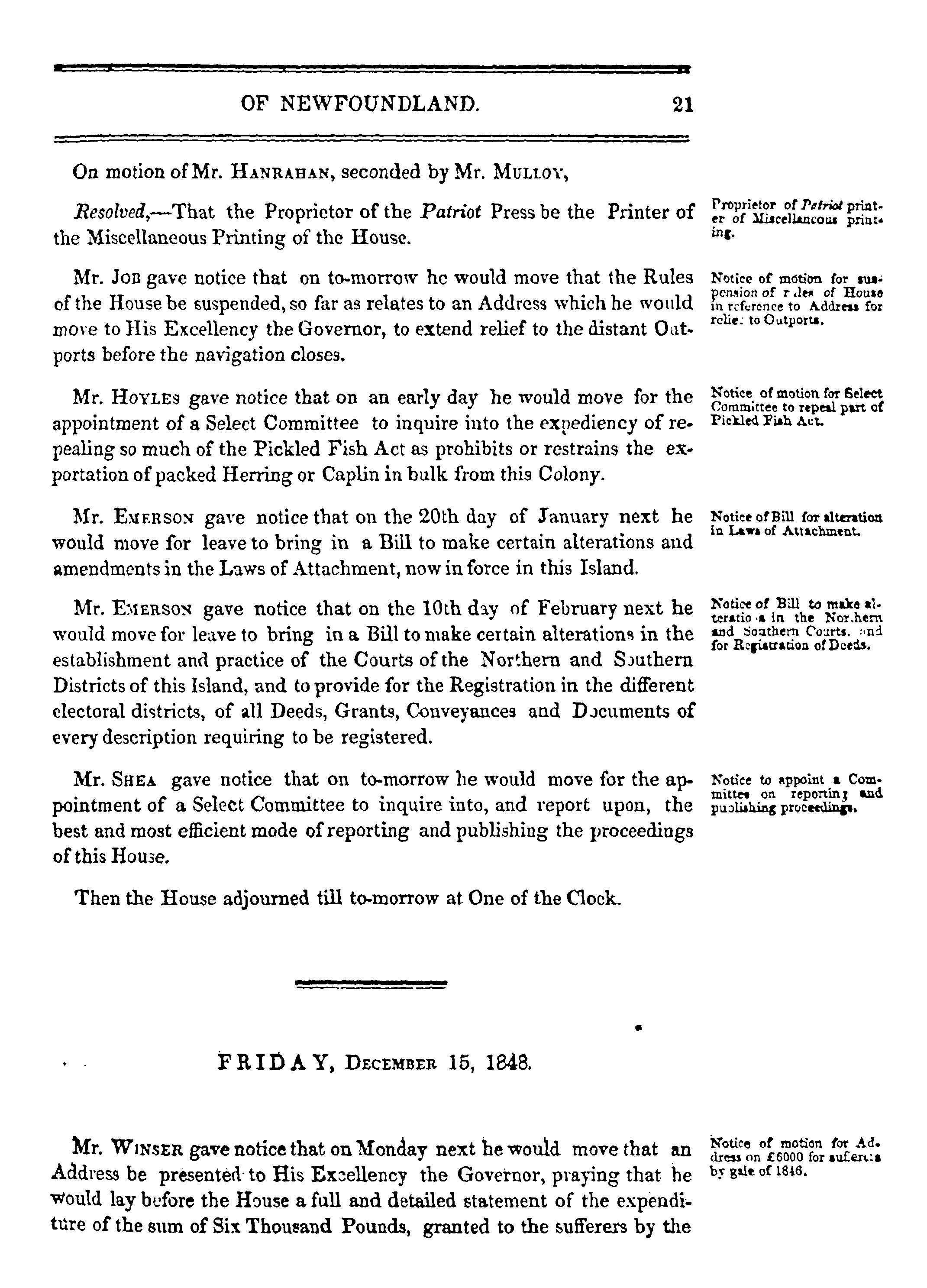Journal of the House of Assembly of Newfoundland : anno duodecimo Victoriæ Reginæ ... first session of the fourth House of Assembly : 1848/49