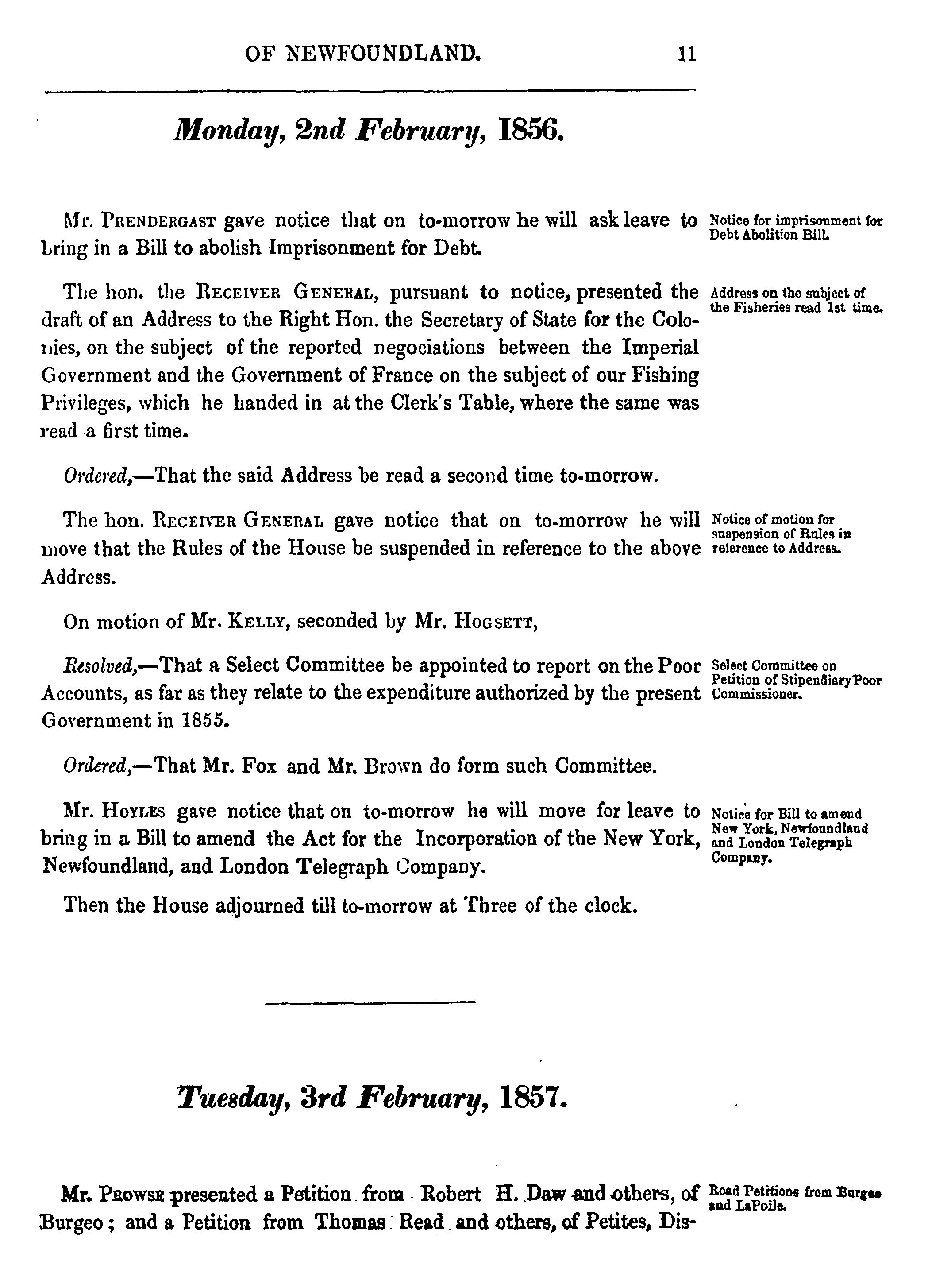 Journal of the House of Assembly of Newfoundland : anno vigessimo[sic]Victoriæ Reginæ ... third session of the sixth General Assembly : 1857