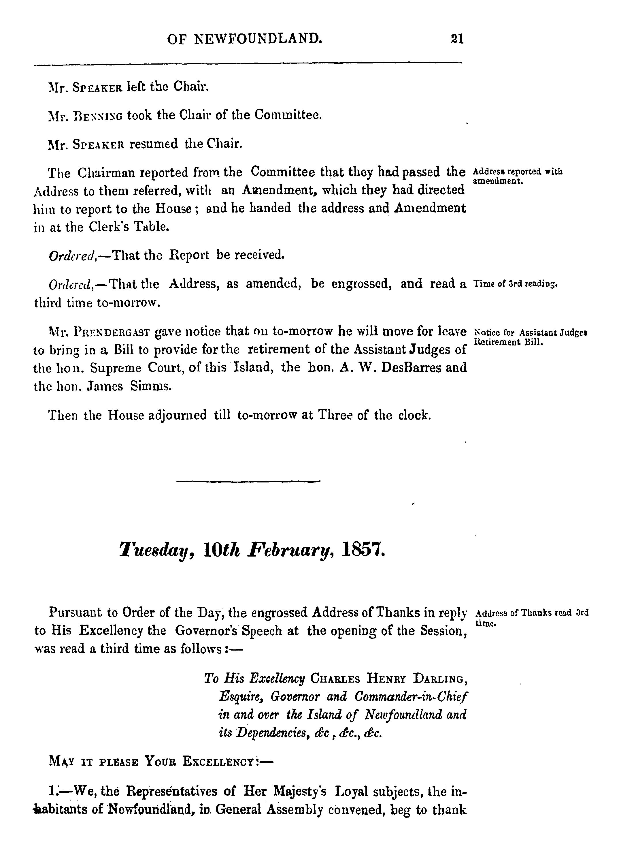 Journal of the House of Assembly of Newfoundland : anno vigessimo[sic]Victoriæ Reginæ ... third session of the sixth General Assembly : 1857
