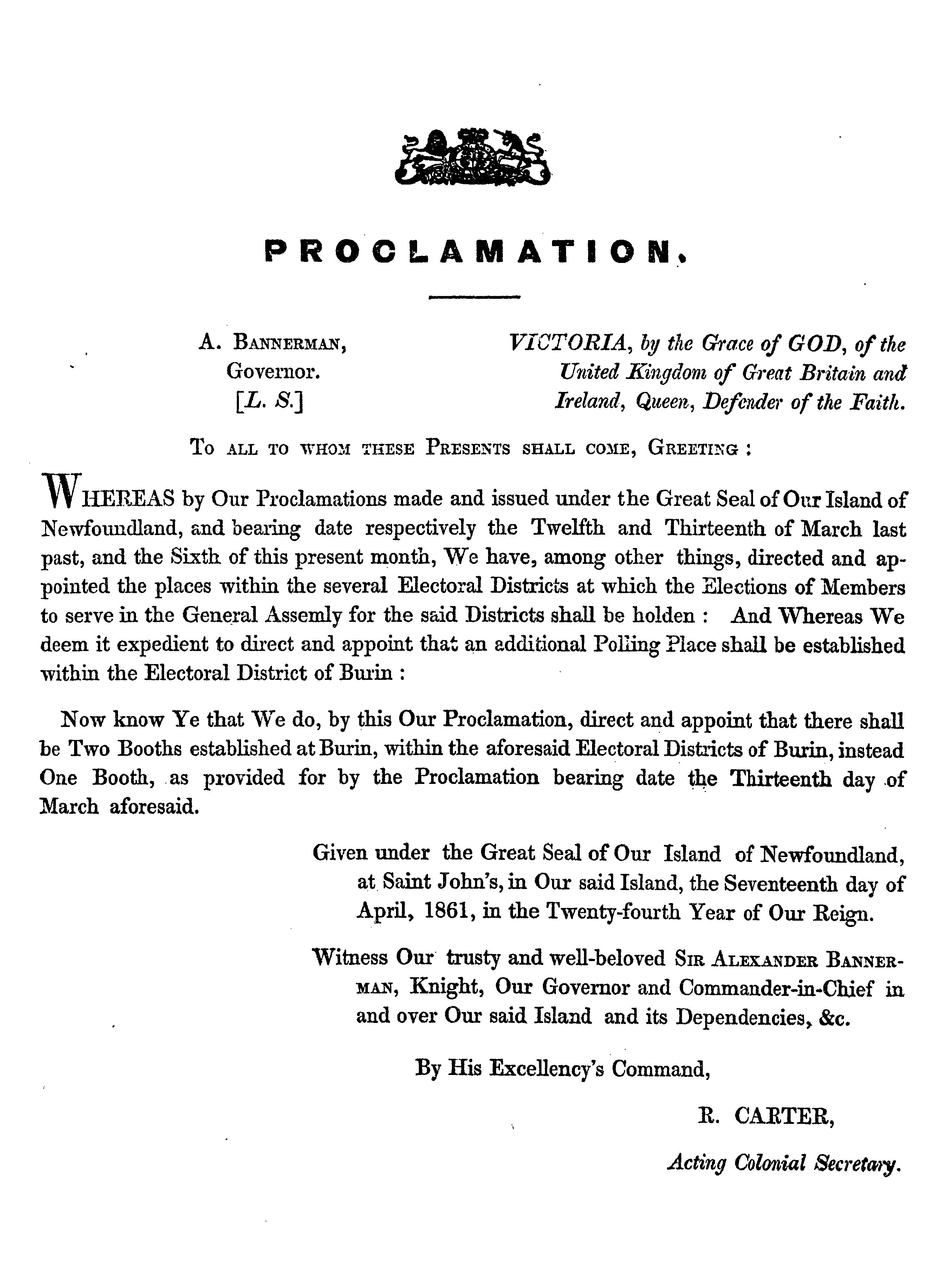 Journal of the House of Assembly of Newfoundland : anno vigessimo [sic] quarto Victoriæ Reginæ ... first session of the eighth General Assembly : 1861