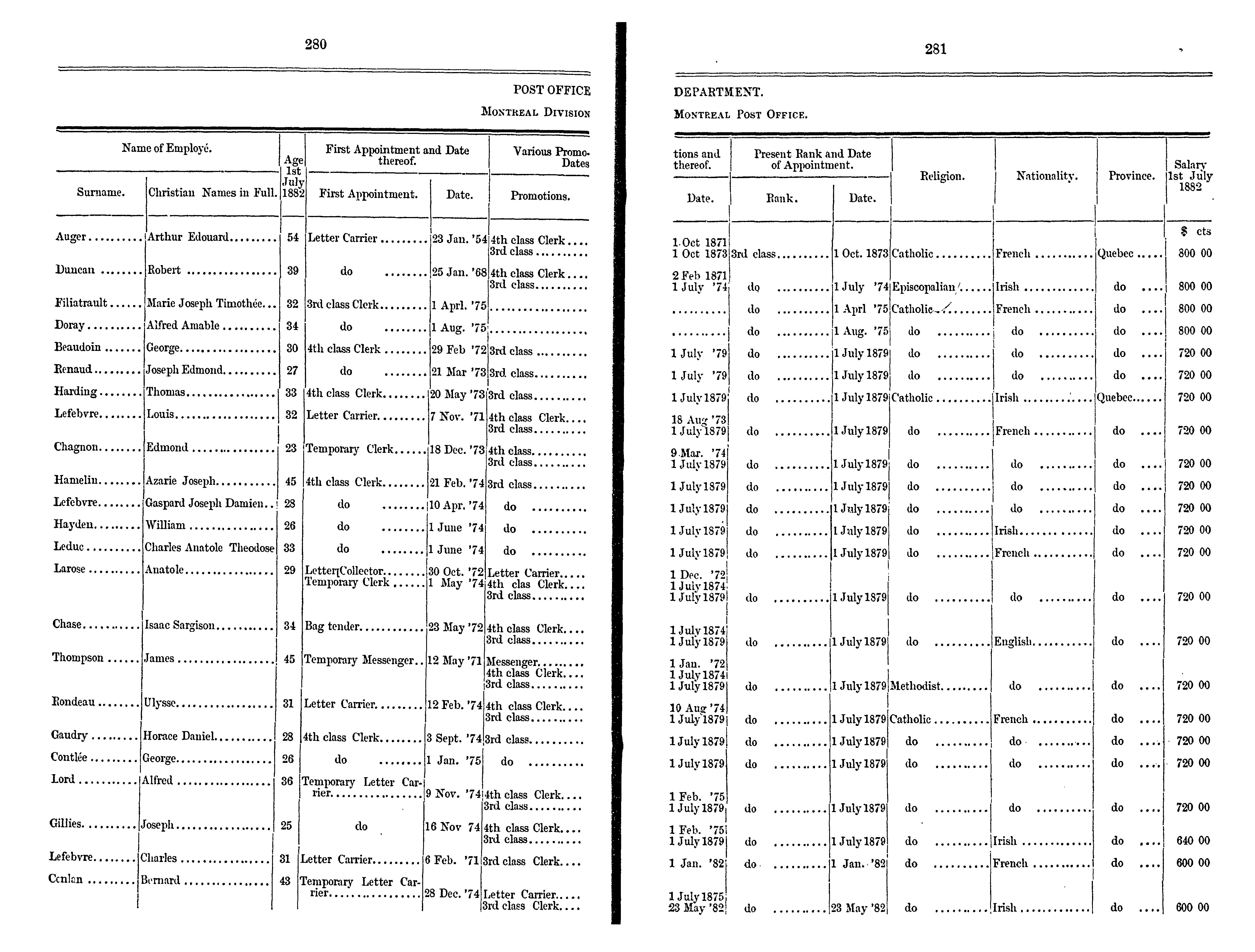Return of the names and salaries, etc. of the employes [sic] of the civil service also of the officers of the paid militia staff, and of the Senate and House of Commons of Canada under "The Canada Civil Service Act 1882"