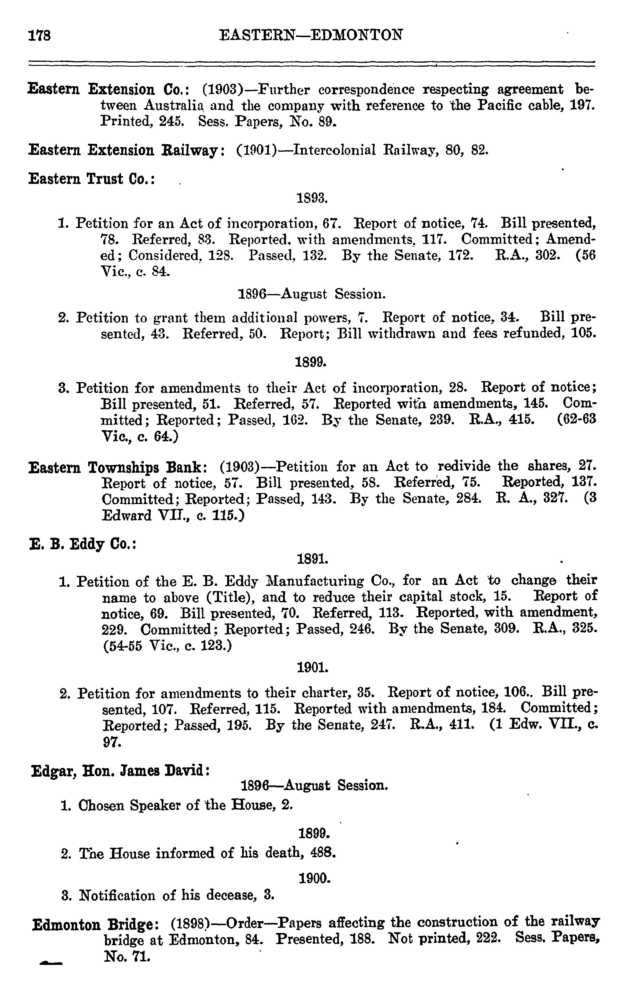General index to the journals of the House of Commons of the Dominion of Canada and of the sessional papers of Parliament, from 1891 to 1903, inclusive