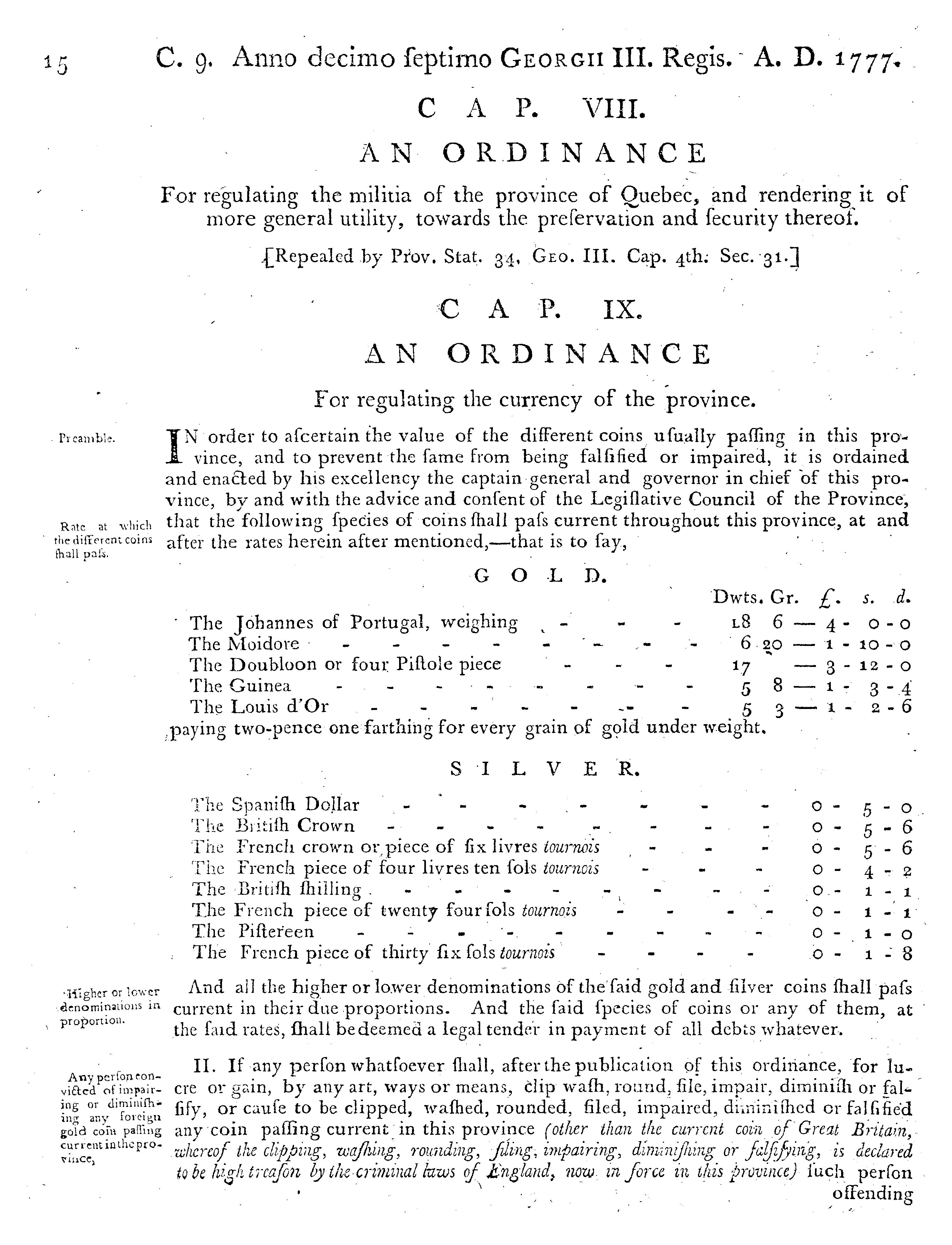 - Quebec : Printed under the authority and by command of His Excellency the Governor ... by William Vondenvelden ..., 1795.