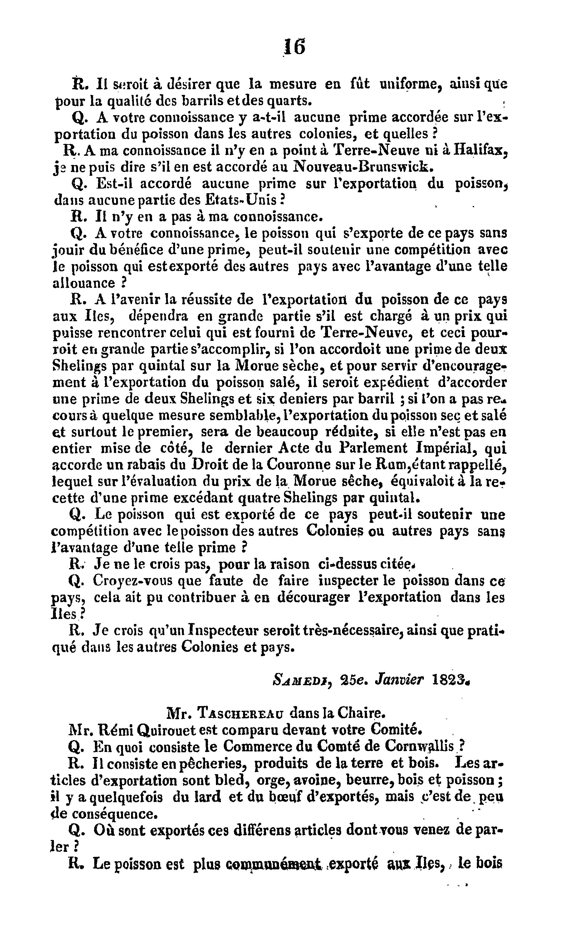 Procédés d'un comité spécial, nommé mercredi, le 15e janvier, 1823, sur le bill pour mieux régler les pêches dans le district inférieur de Gaspé, avec une instruction de considérer, s'il n'est pas expédient d'étendre les dispositions du dit bill aux comtés de Cornwallis et Northumberland