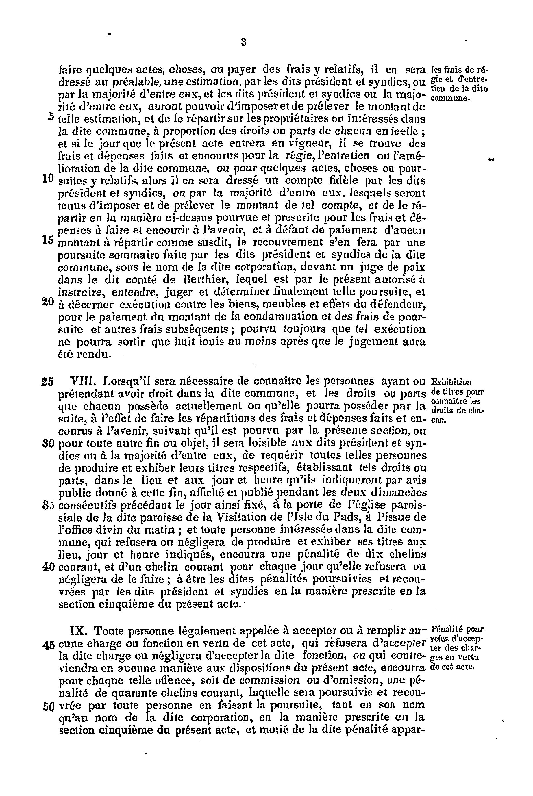 Acte pour remettre en vigueur et amender "l'acte pour règler la commune de l'Isle du Pads, dans le comté de Berthier"