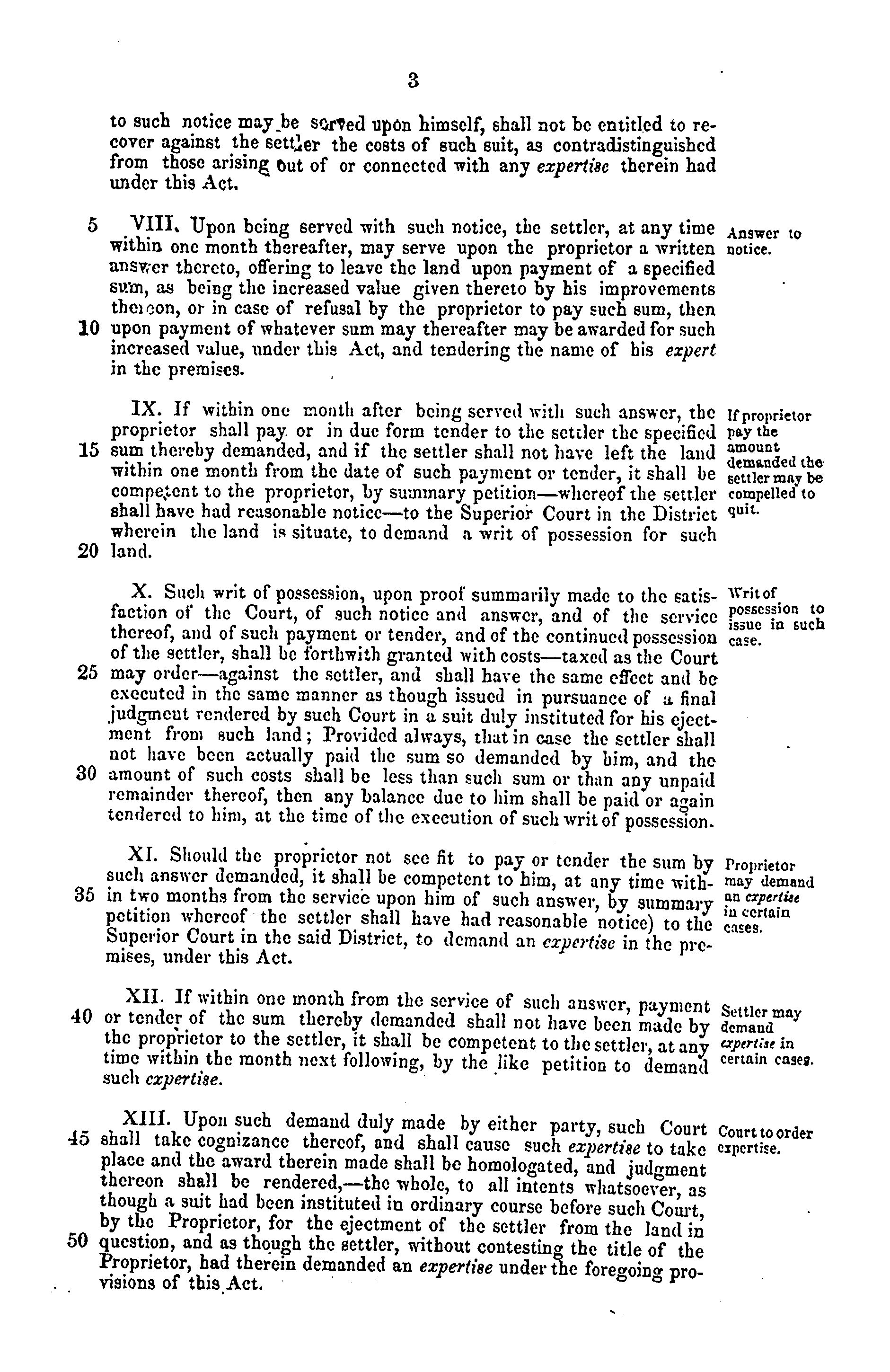 Bill for the protection of settlers in Lower Canada, in certain cases.