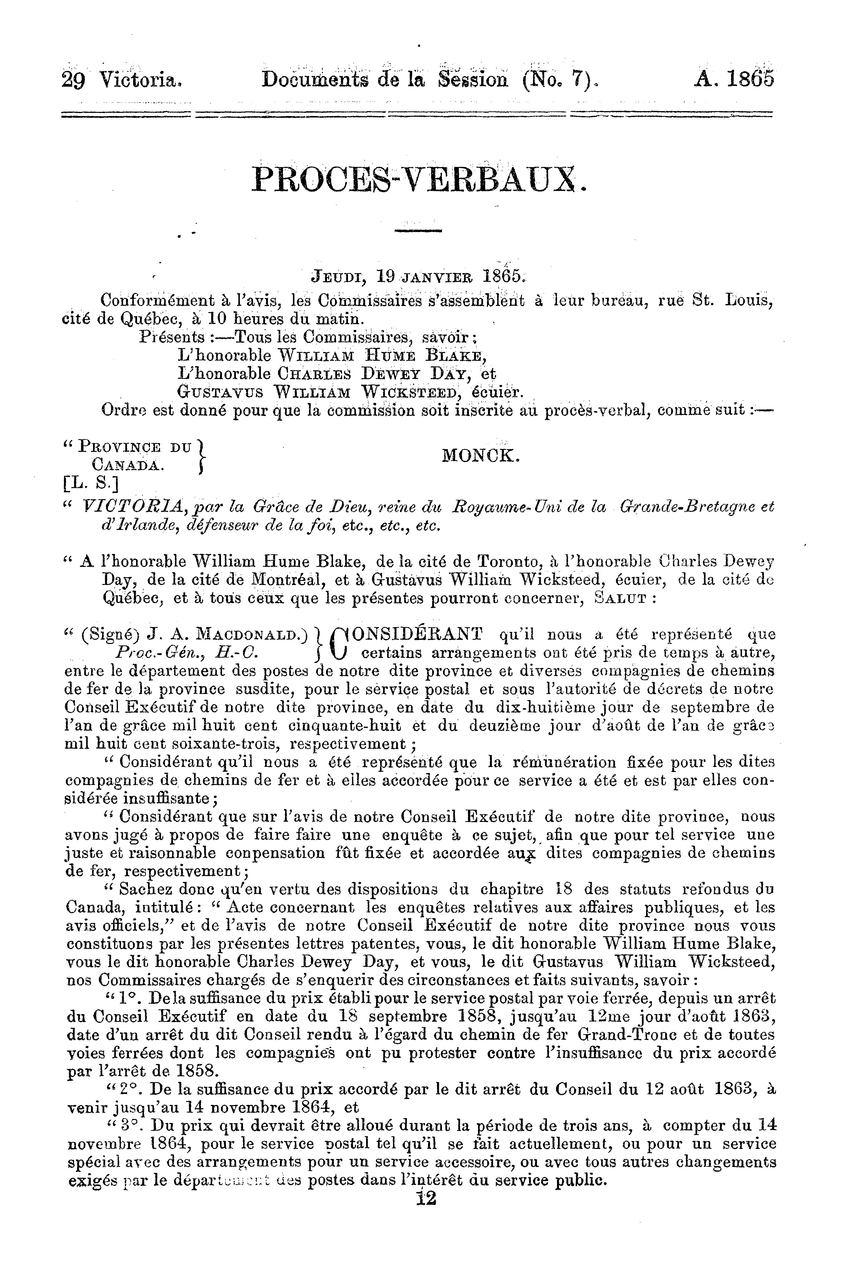 Documents de la session [Vol. 1 (1865)] : Vol. 1 (1865)