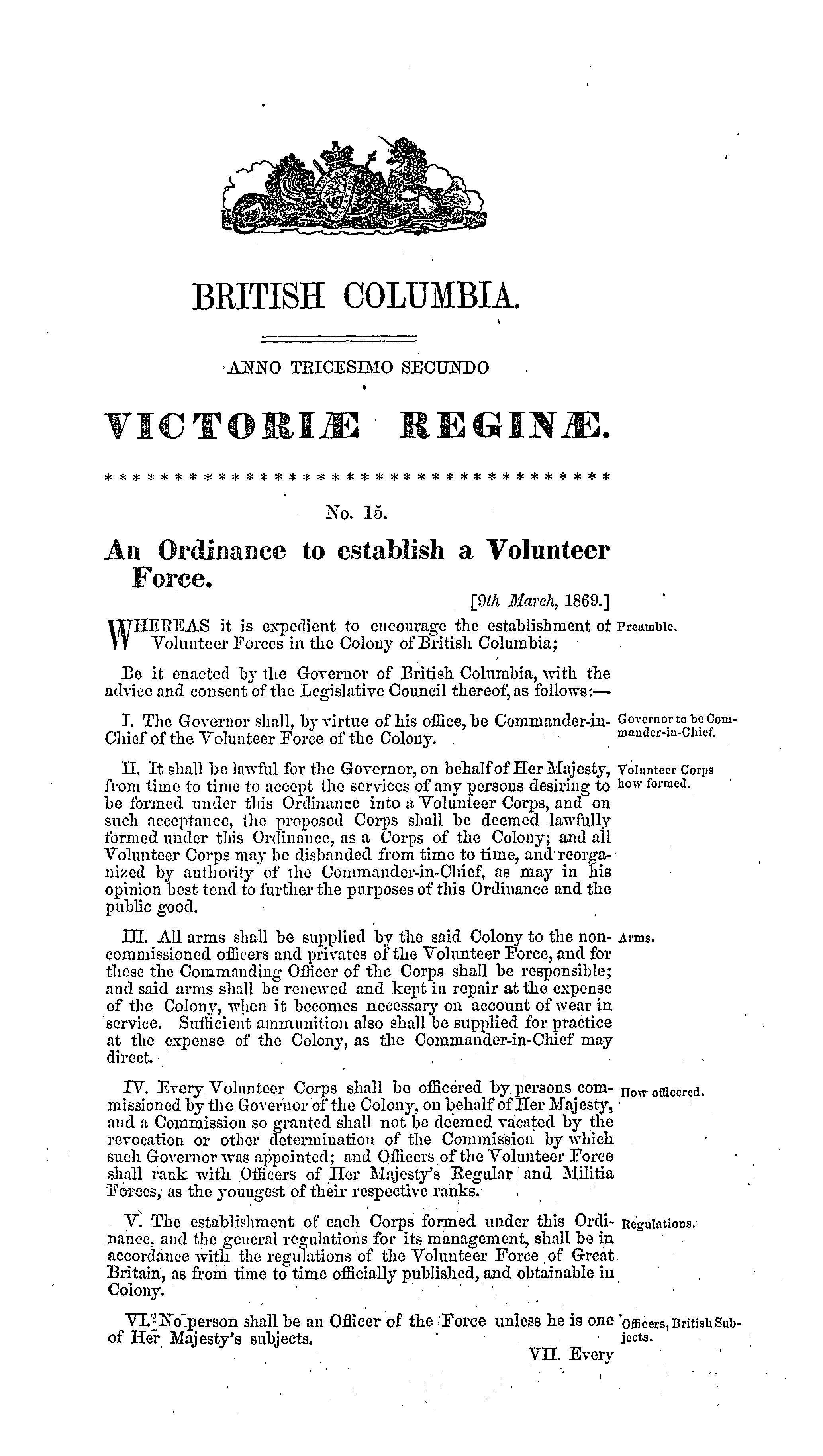 Ordinances passed by the Legislative Council of British Columbia, during the session from 17th December to 15th March, 1868-9 : 1868/69