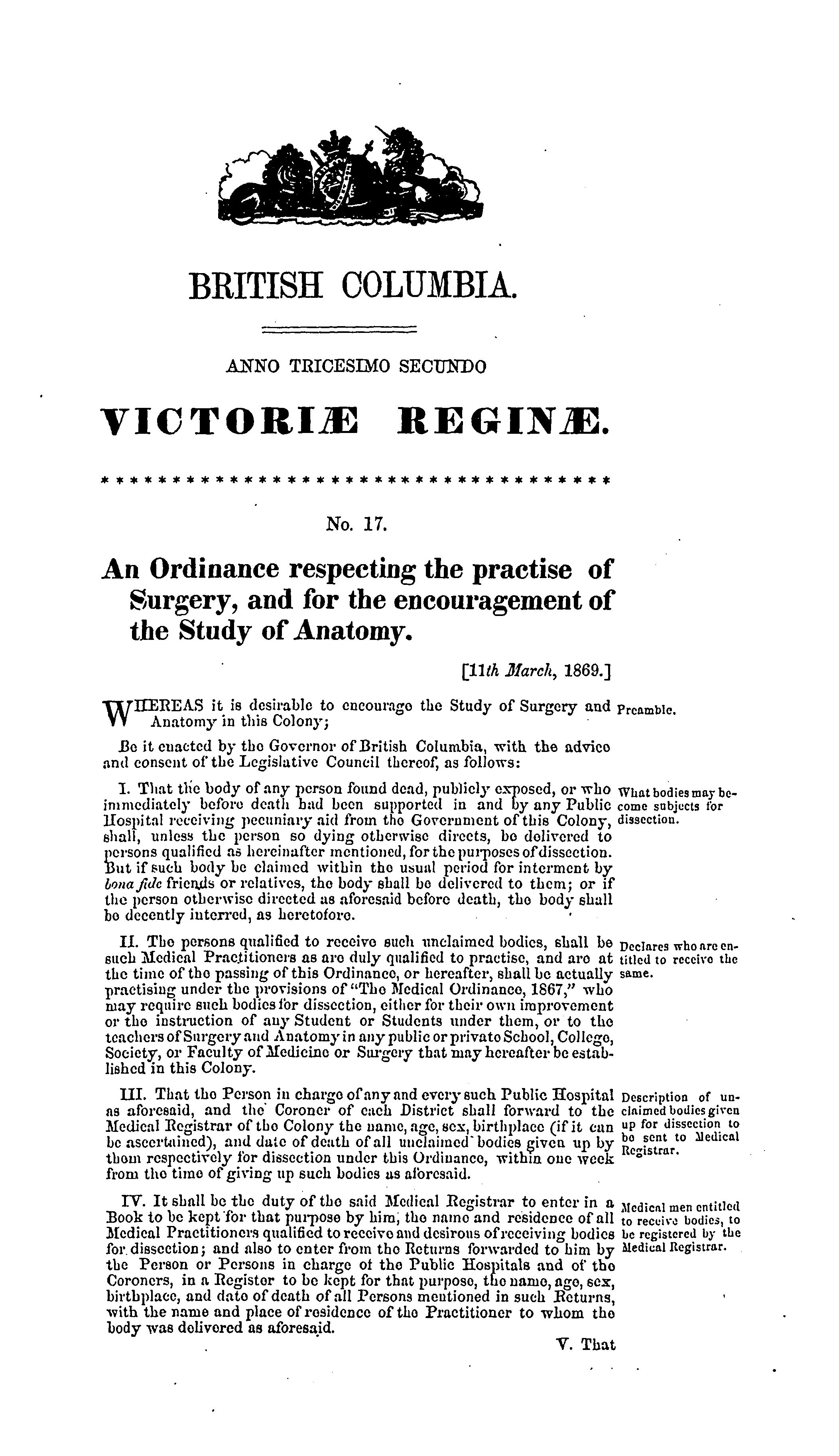 Ordinances passed by the Legislative Council of British Columbia, during the session from 17th December to 15th March, 1868-9 : 1868/69