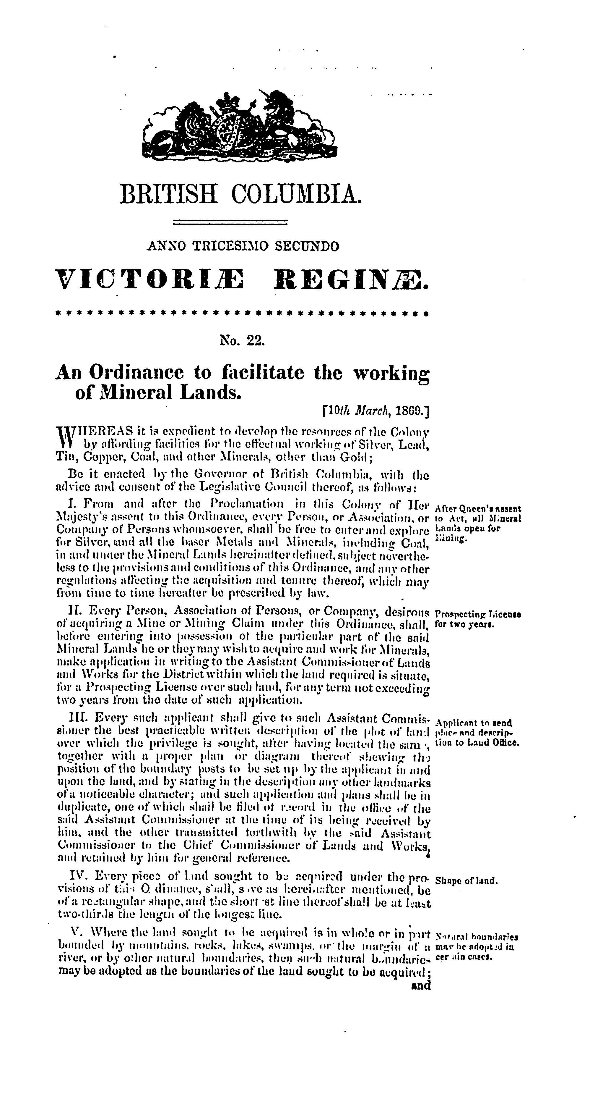 Ordinances passed by the Legislative Council of British Columbia, during the session from 17th December to 15th March, 1868-9 : 1868/69