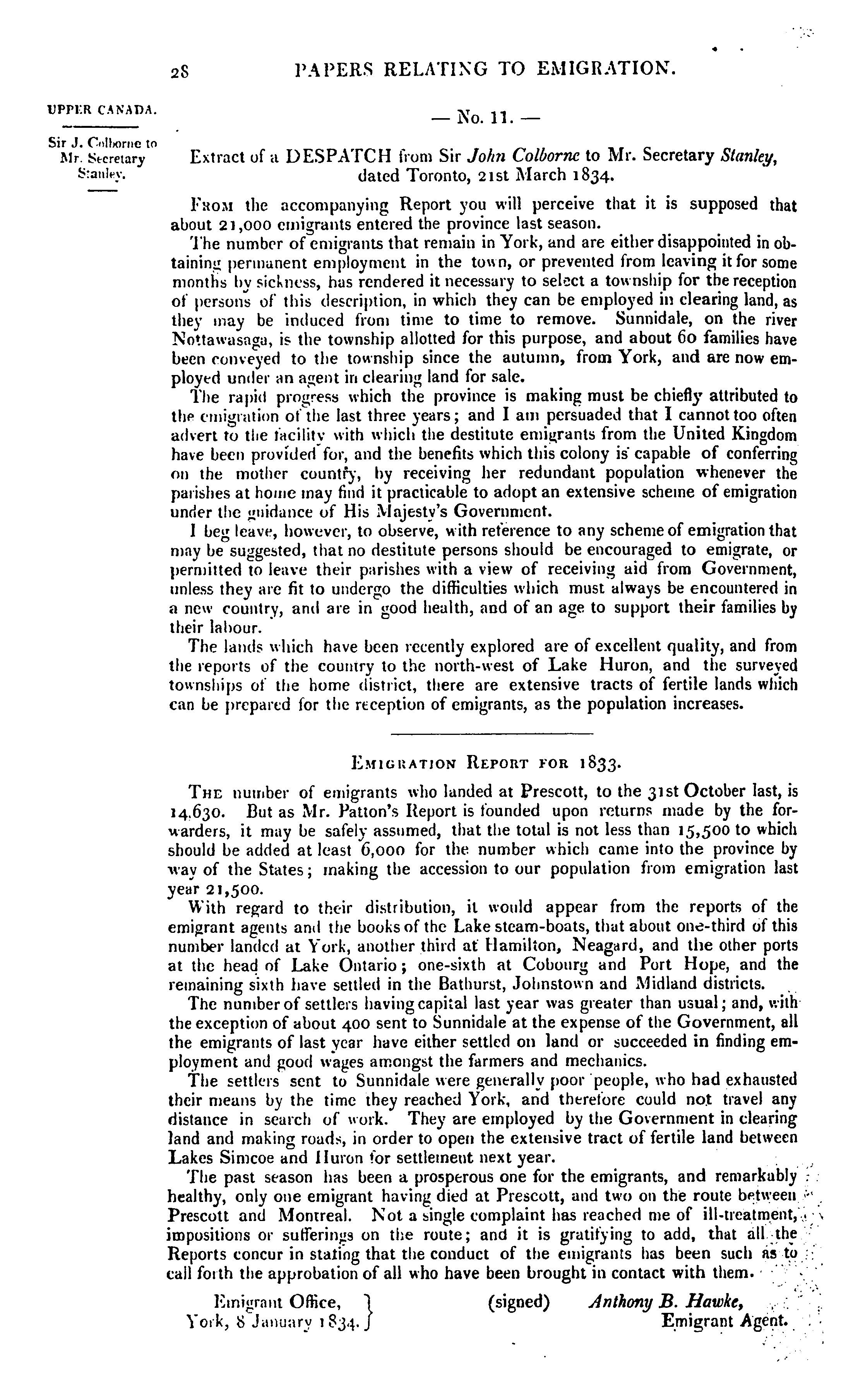 Return to an address to His Majesty, dated 21 July 1834, for, copies or extracts of any correspondence between the secretary of state and the governors of the British colonies, respecting emigration, and the disposal of Crown lands, not already presented to this House, also, so much of two despatches from Colonel Arthur to Viscount Goderich, dated 9 July 1831, and 28 June 1832, as relates to the consumption of rum in the colony of Van Diemen's Land, and to the difficulties experienced by the masters of assigned servants