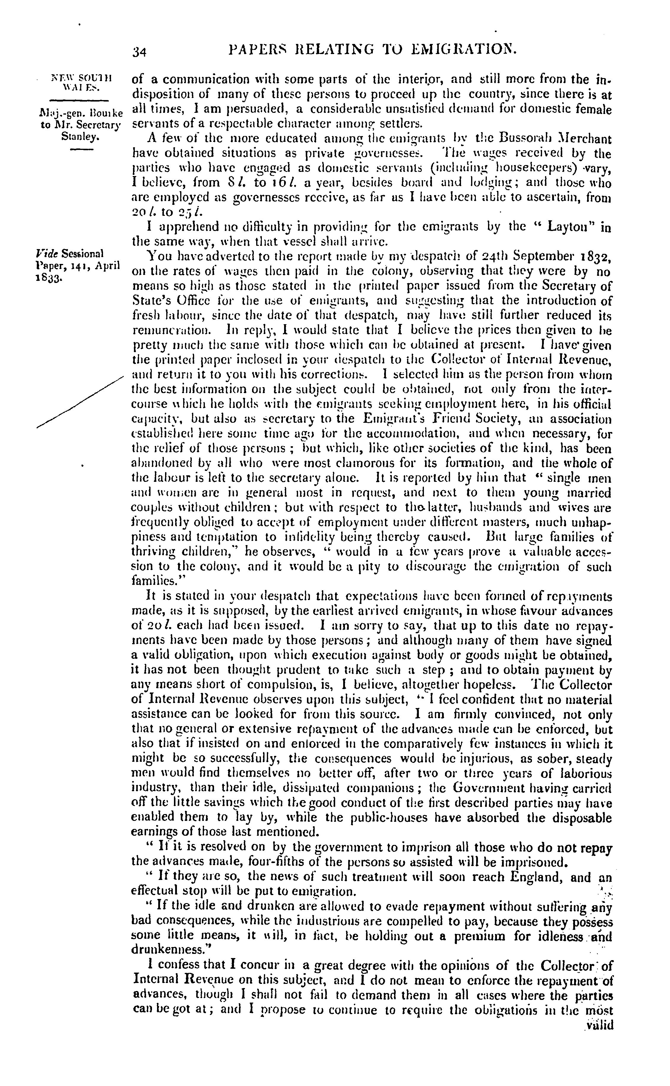 Emigration : return to an address to His Majesty, dated 21 July 1834, for, copies or extracts of any correspondence between the secretary of state and the governors of the British colonies, respecting emigration, and the disposal of Crown lands, not already presented to this House, also, so much of two despatches from Colonel Arthur to Viscount Goderich, dated 9 July 1831, and 28 June 1832, as relates to the consumption of rum in the colony of Van Diemen's Land, and to the difficulties experienced by the masters of assigned servants. - Adresse bibliographique