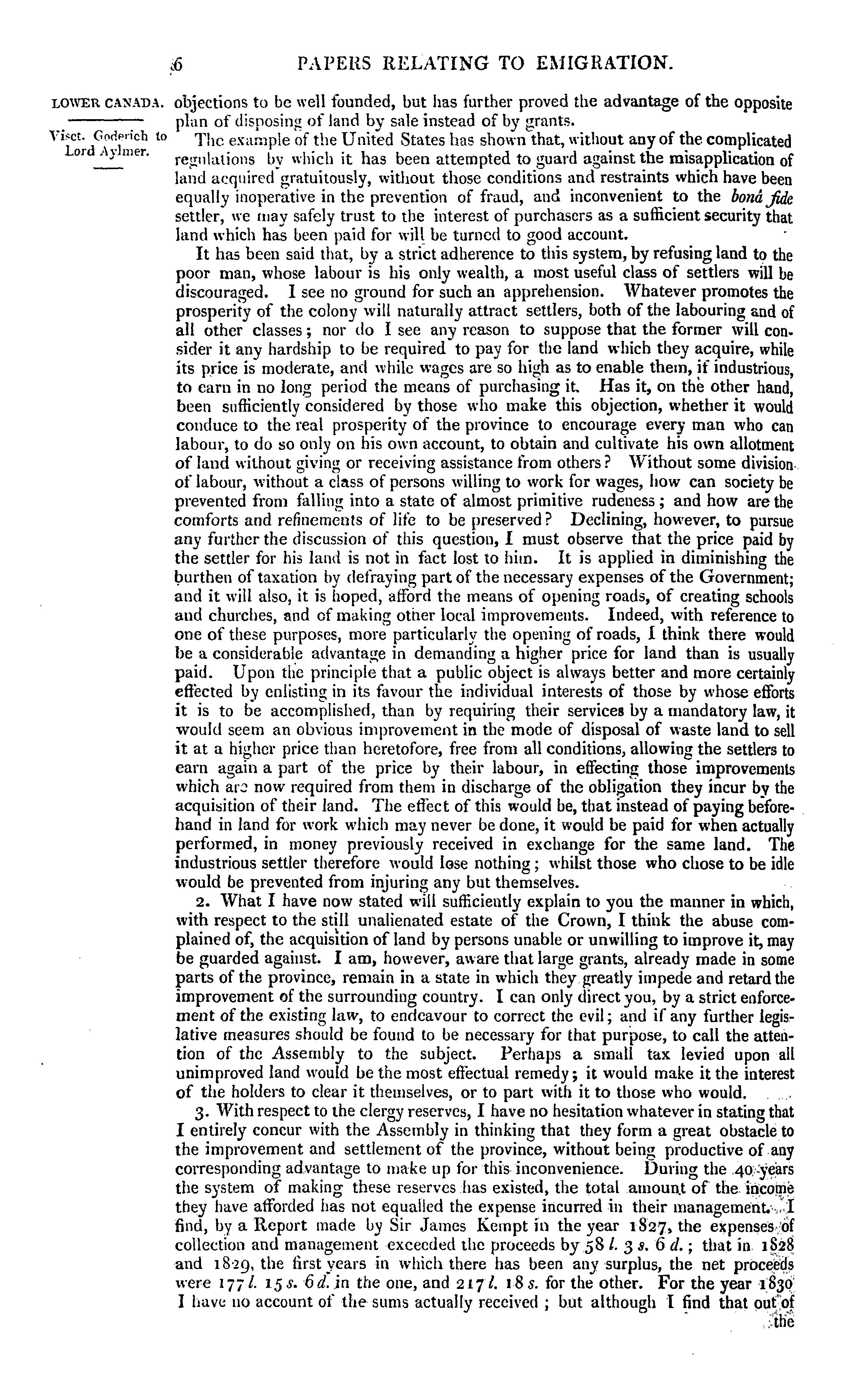 Cover title: Correspondence respecting emigration, and disposal of Crown lands; also, despatches relating to consumption of rum in Van Dieman's Land.