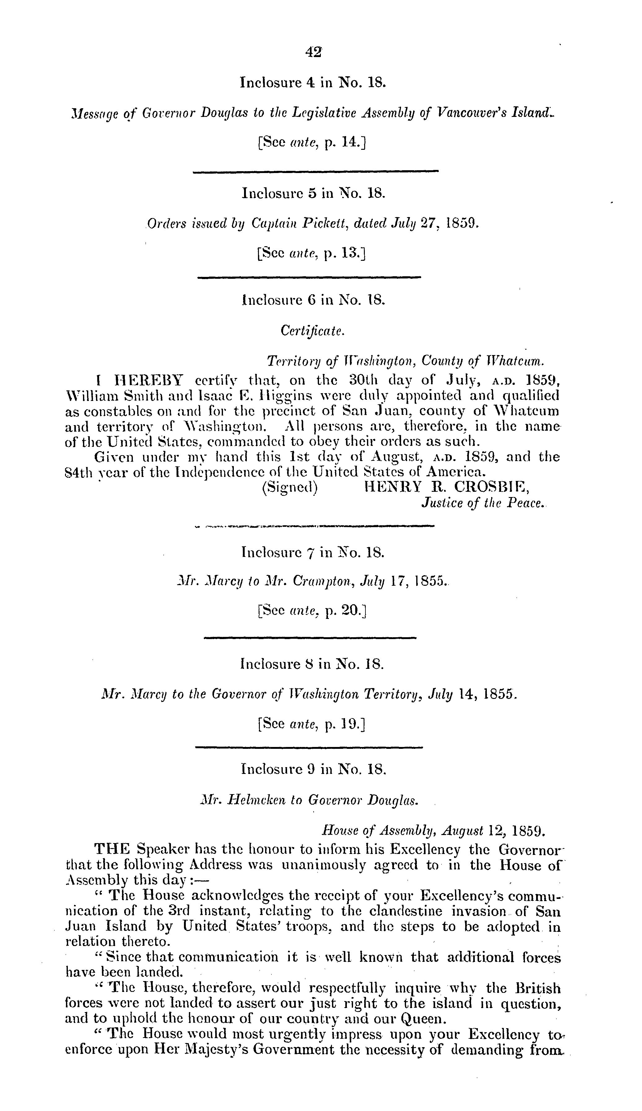 - Correspondence relative to the occupation of the Island of San Juan by United States' troops : August to October, 1859.