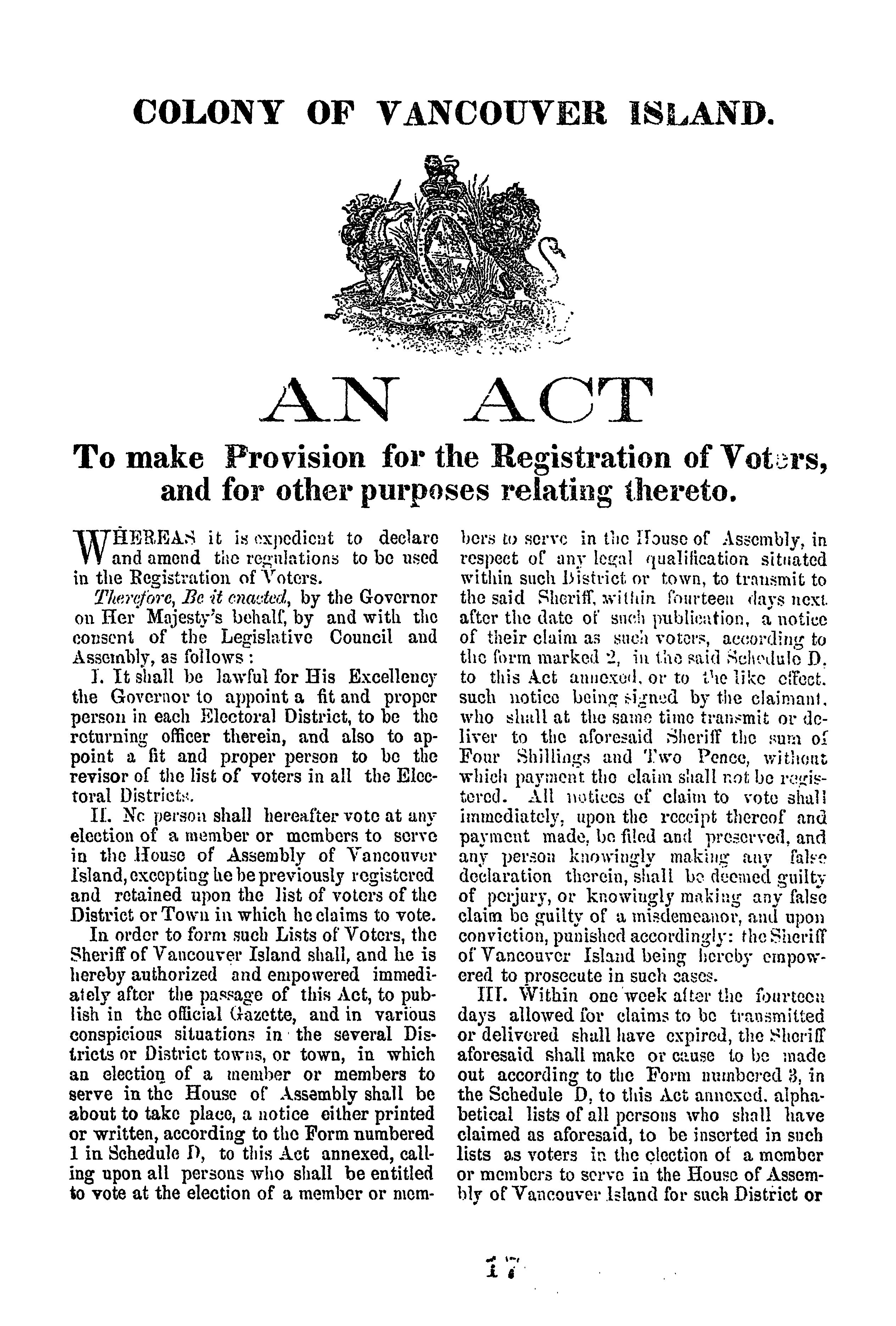 Droit -- Colombie-Britannique -- Vancouver, île de -- Législation. - Document original