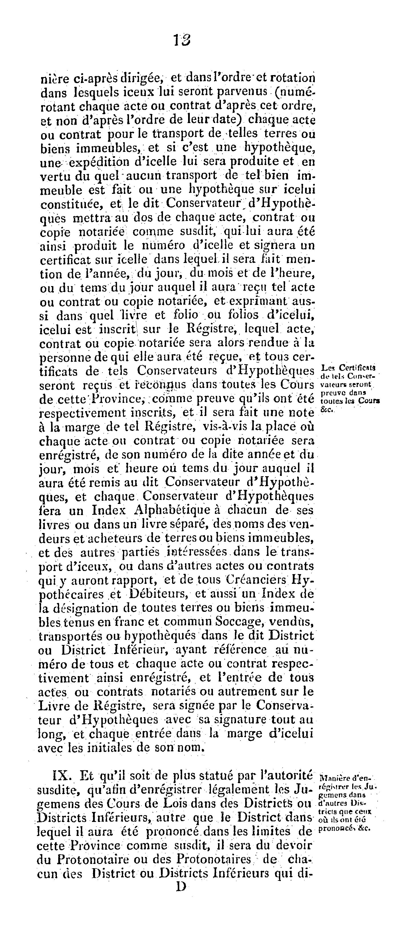 Bill (du Conseil législatif) pour rendre spéciales toutes hypothèques sur toutes terres et autres propriétés immeubles qui sont maintenant ou pourront être tenues à l'avenir en franc et commun soccage dans cette province, et pour l'établissement de bureaux d'enrégistrement pour tous contrats et hypothèques relatifs à telles propriétés en icelle
