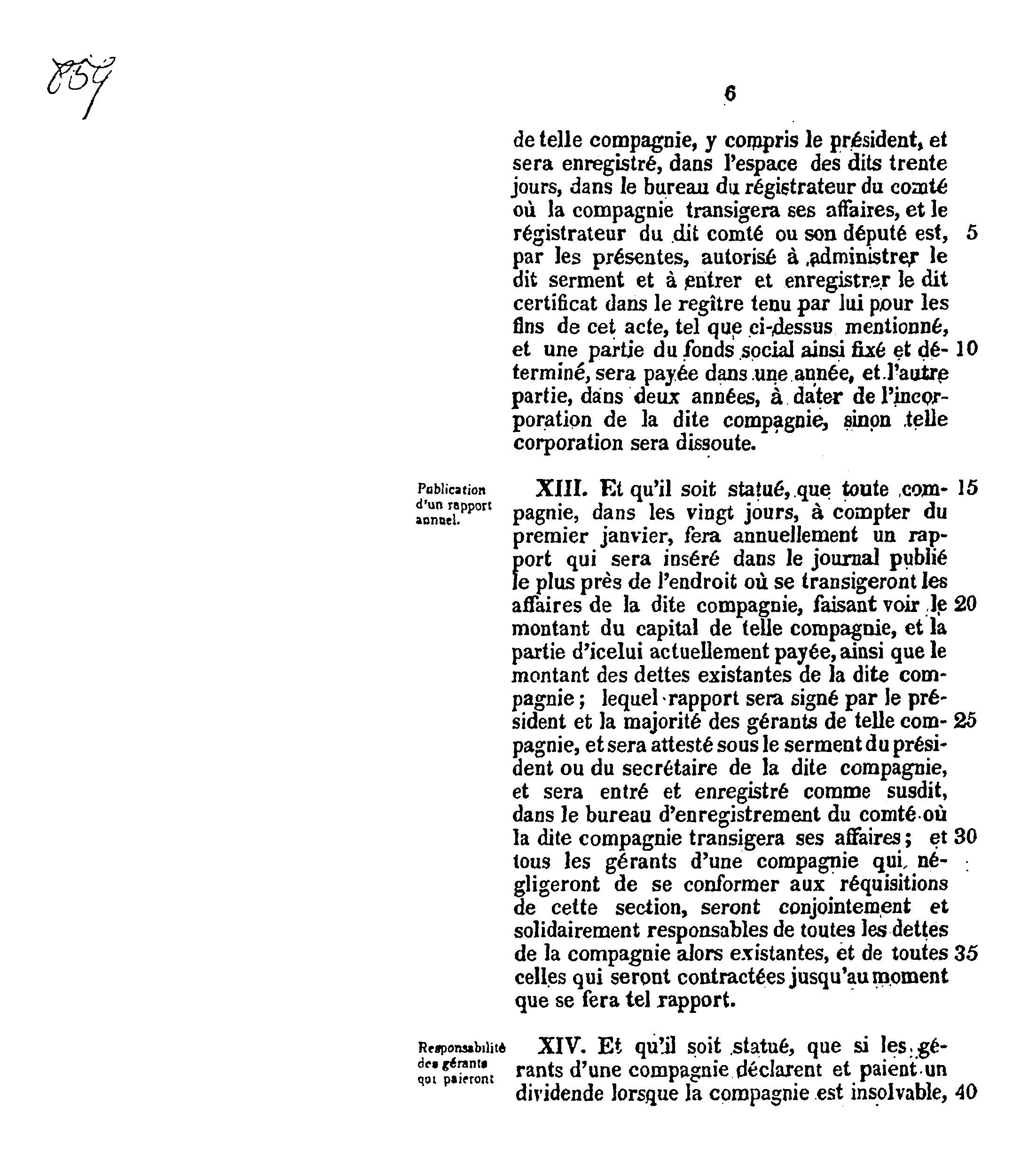 Acte pour pourvoir à la formation de compagnies incorporées à fonds social, pour des fins relatives aux manufactures, aux mines, à la mécanique ou à la chimie