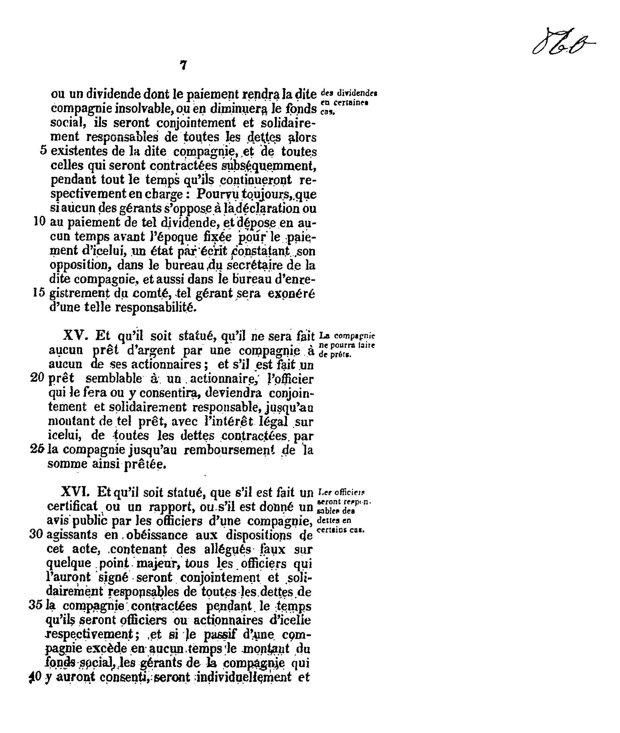 Acte pour pourvoir à la formation de compagnies incorporées à fonds social, pour des fins relatives aux manufactures, aux mines, à la mécanique ou à la chimie