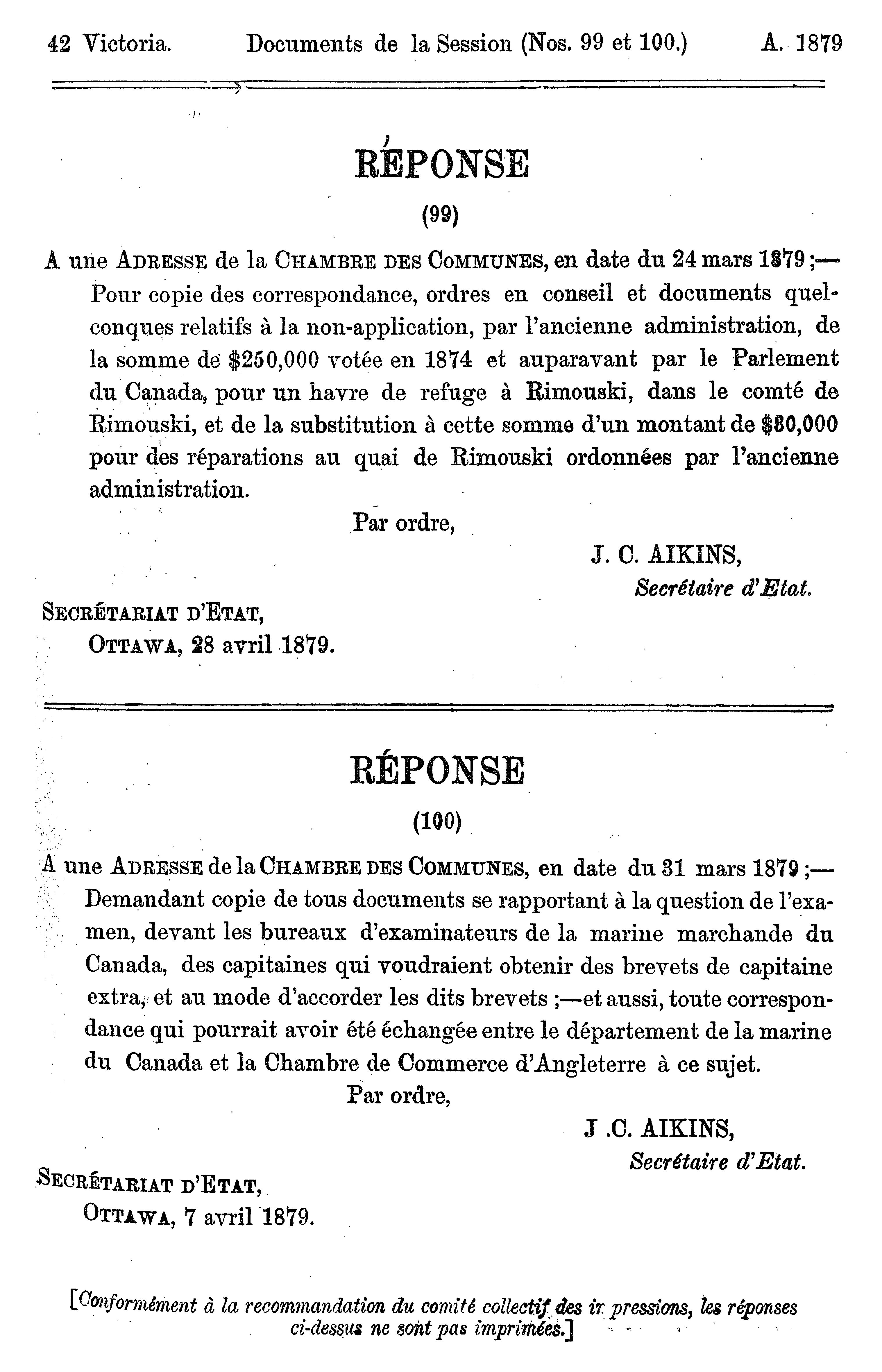 Documents de la session [Vol. 12, no 10 (1879)] : Vol. 12, no 10 (1879)