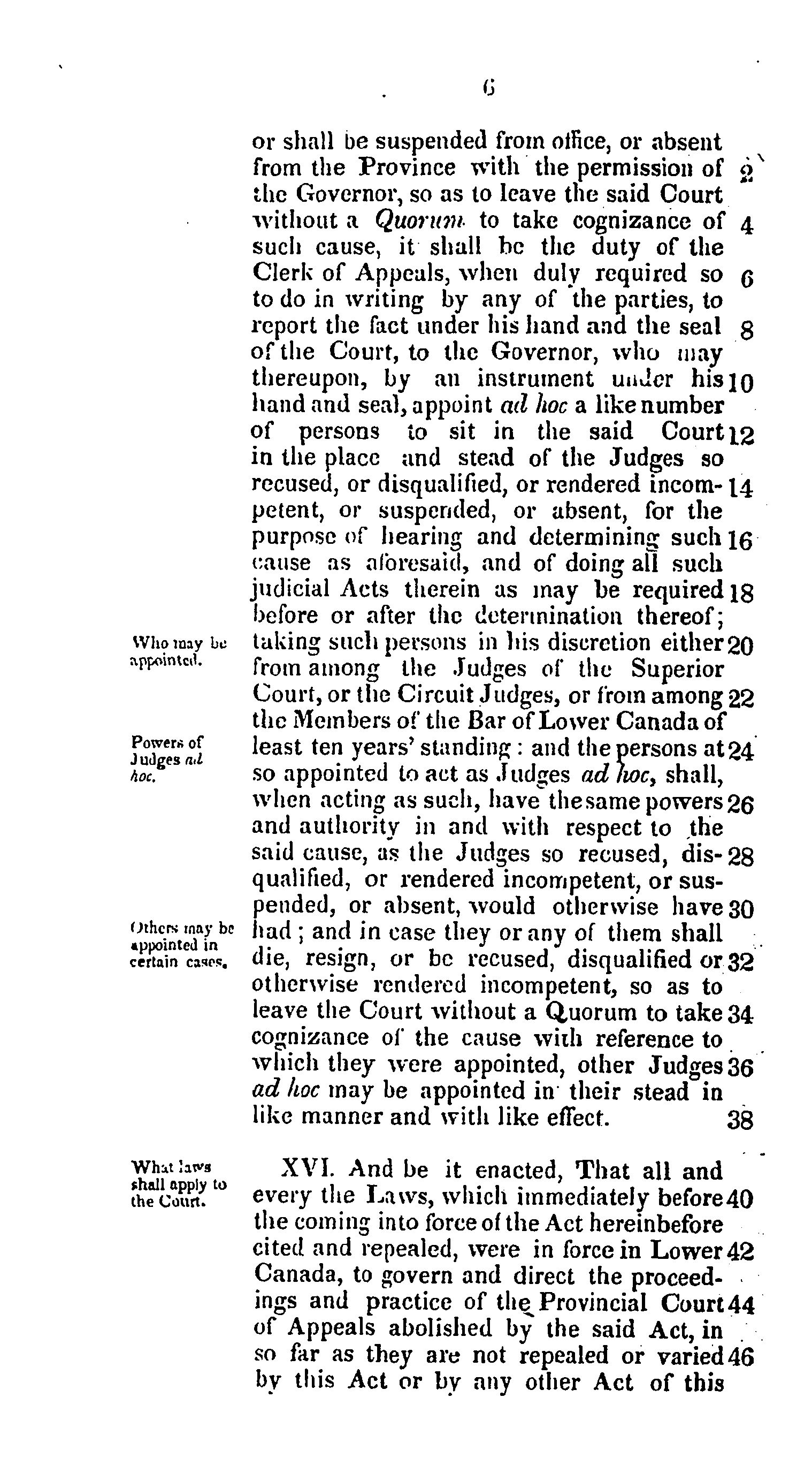 Act to establish a court having jurisdiction in appeals and criminal matters, for Lower Canada