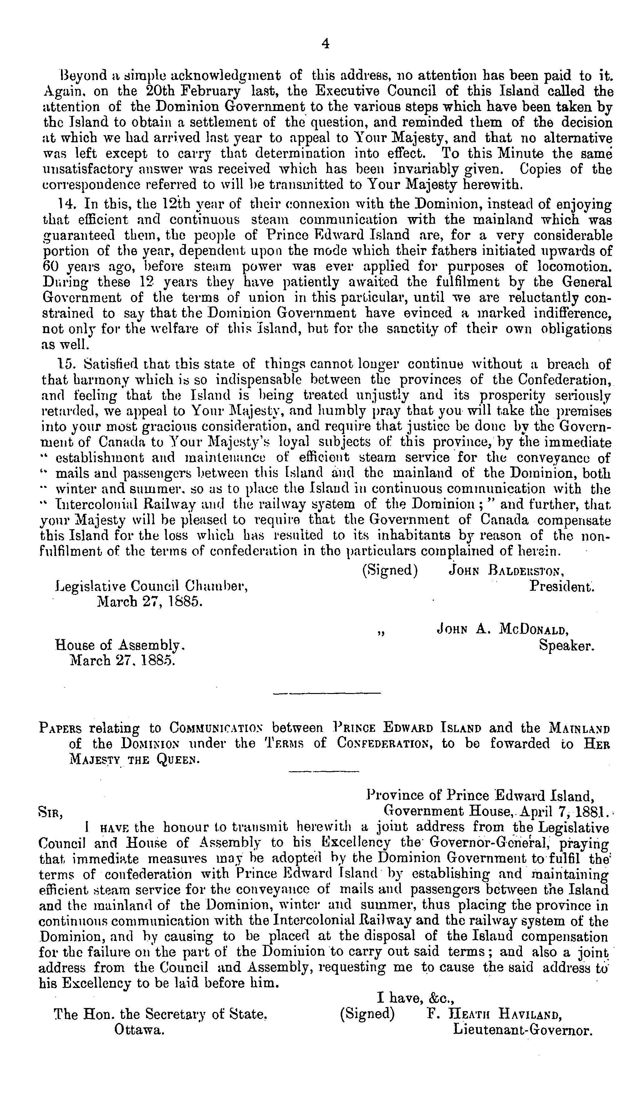 Correspondence respecting the establishment of steam communication between Prince Edward Island and the mainland of Canada