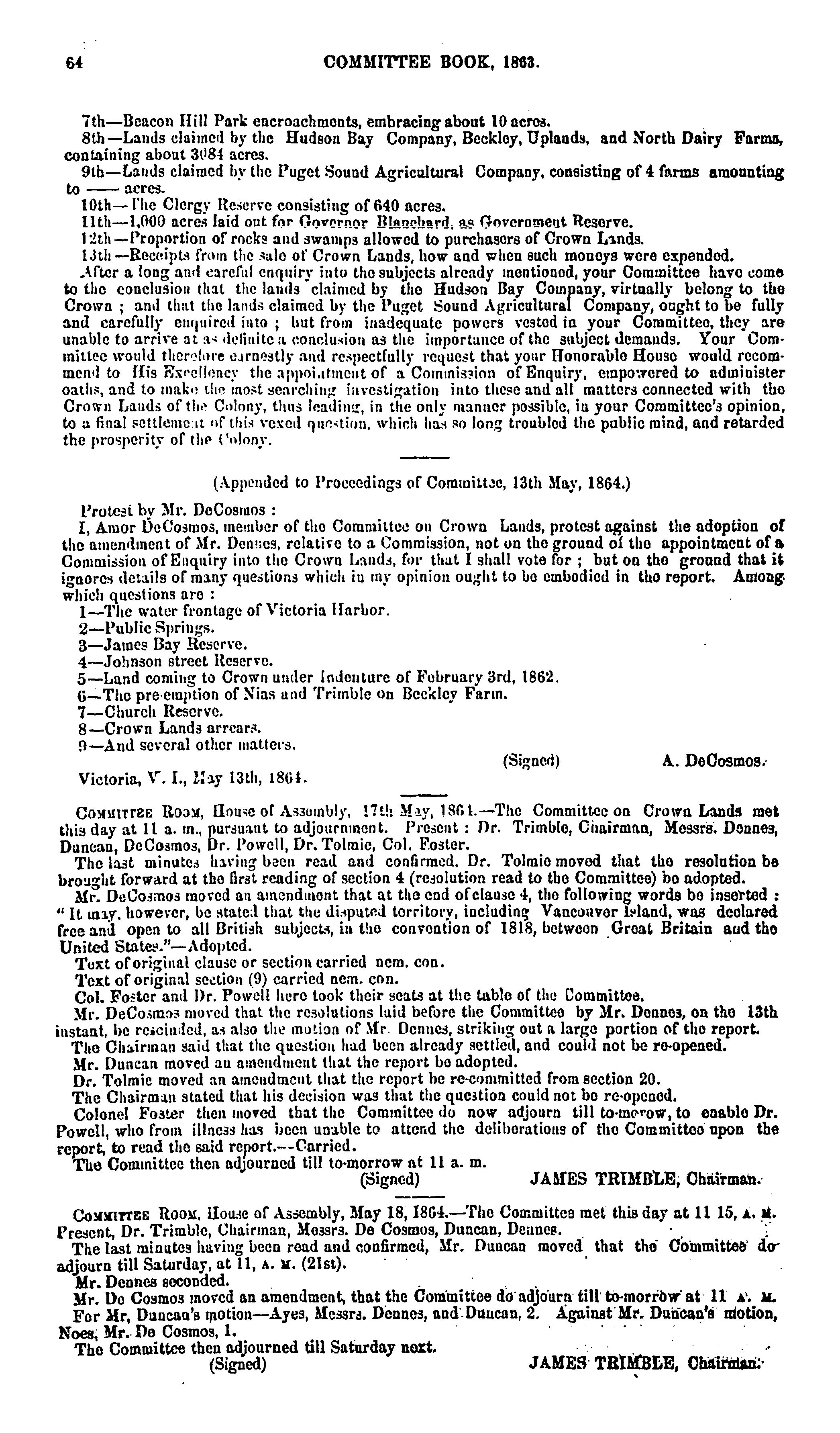 Vancouver Island (B.C.). House of Assembly. Select Committee on Crown Lands.