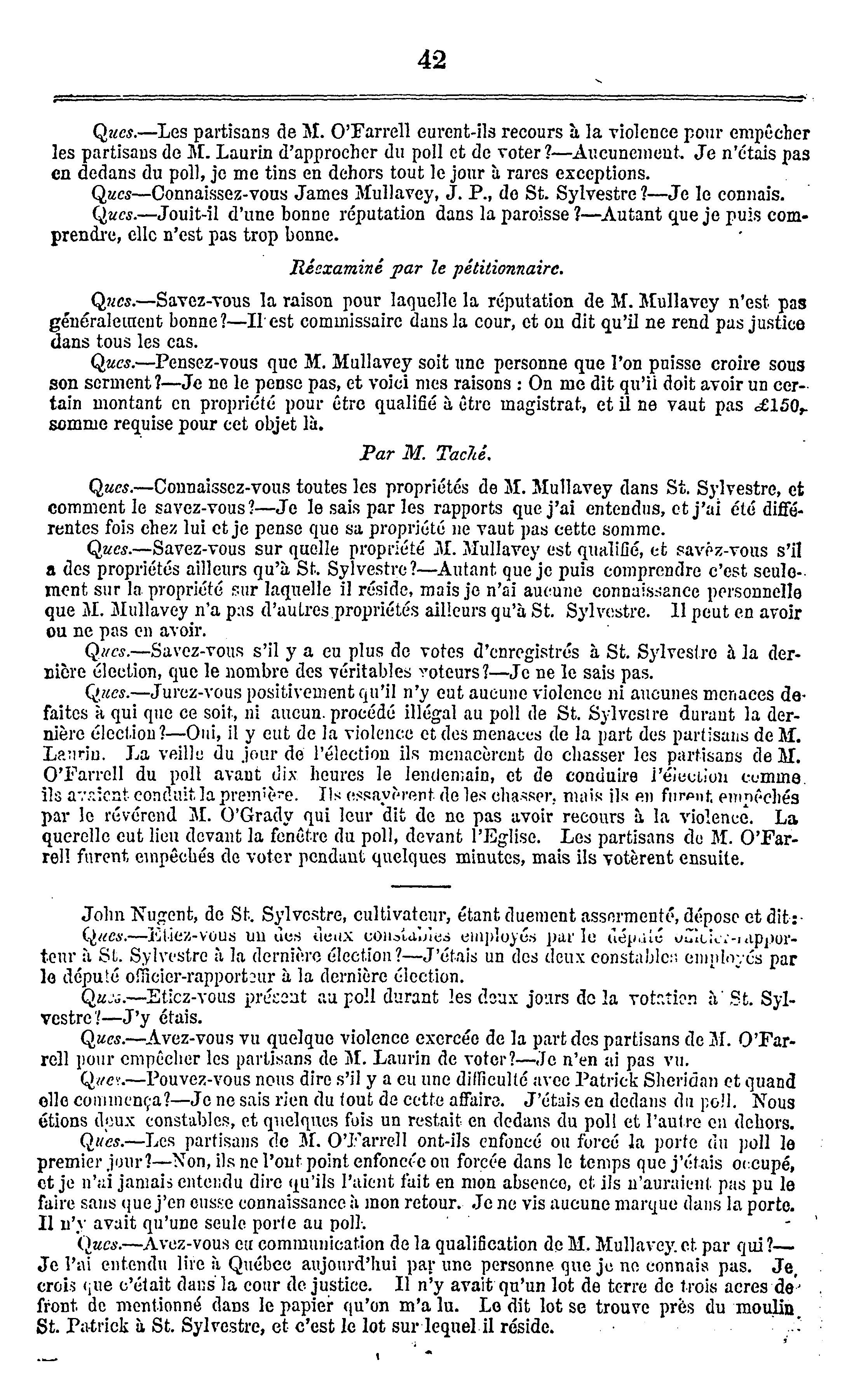 Minutes des délibérations du comité sur l'élection de Lotbinière.