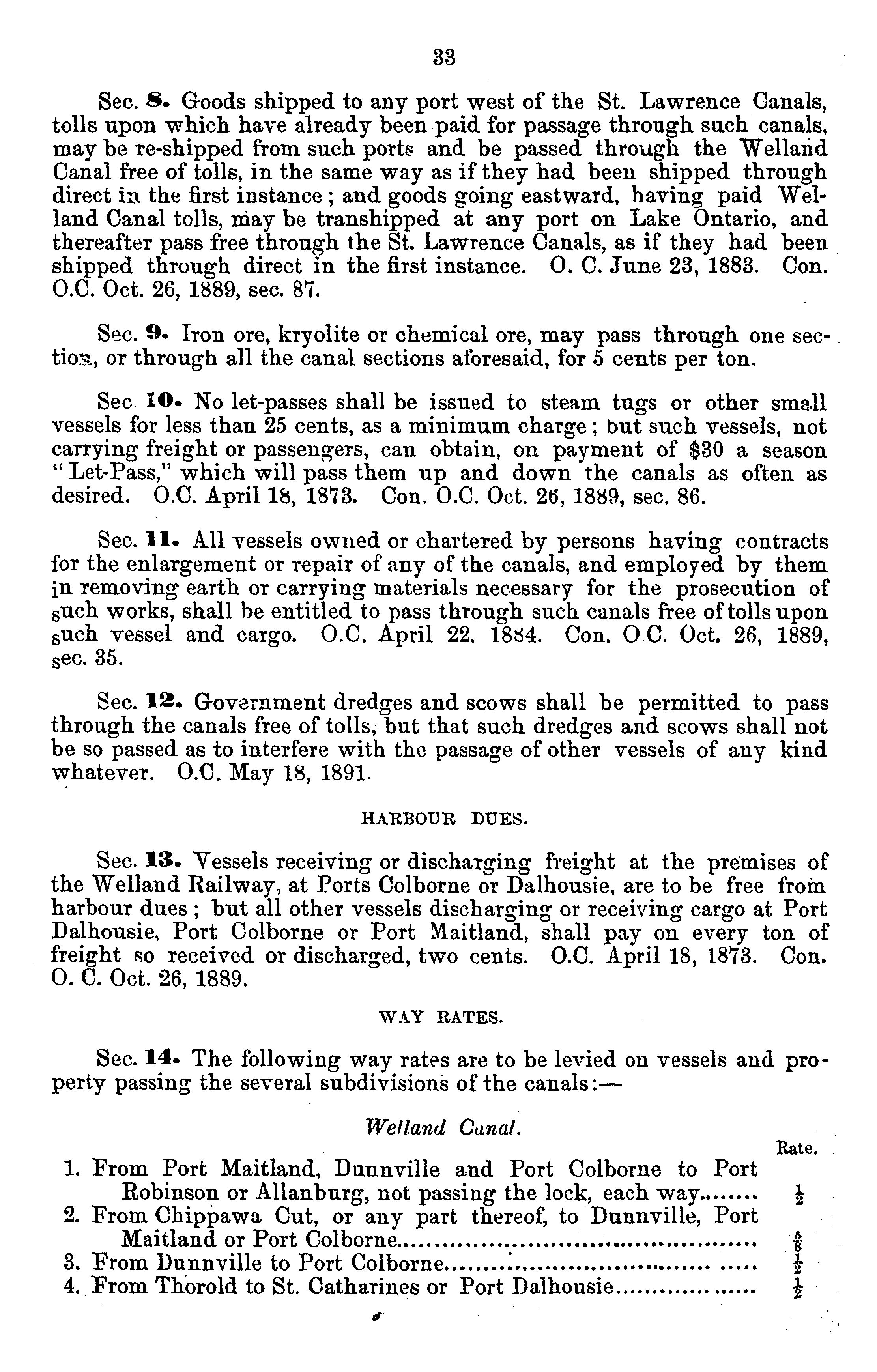 Canals -- Canada -- Rates and tolls.